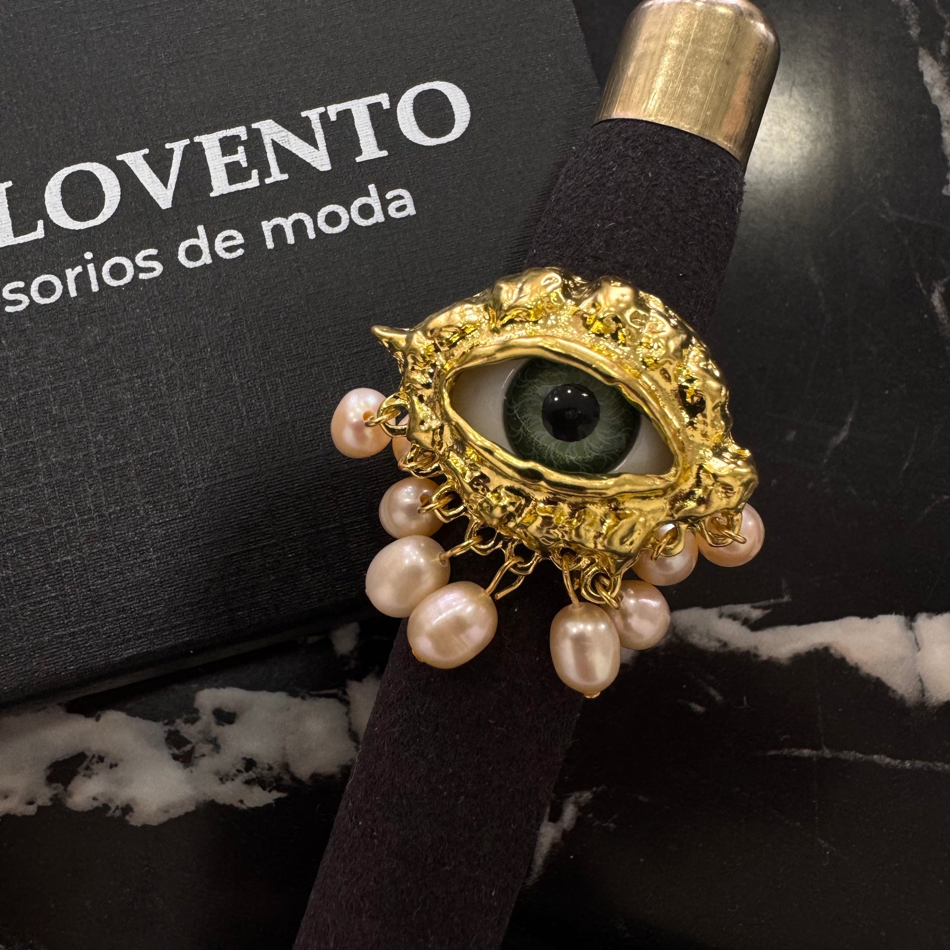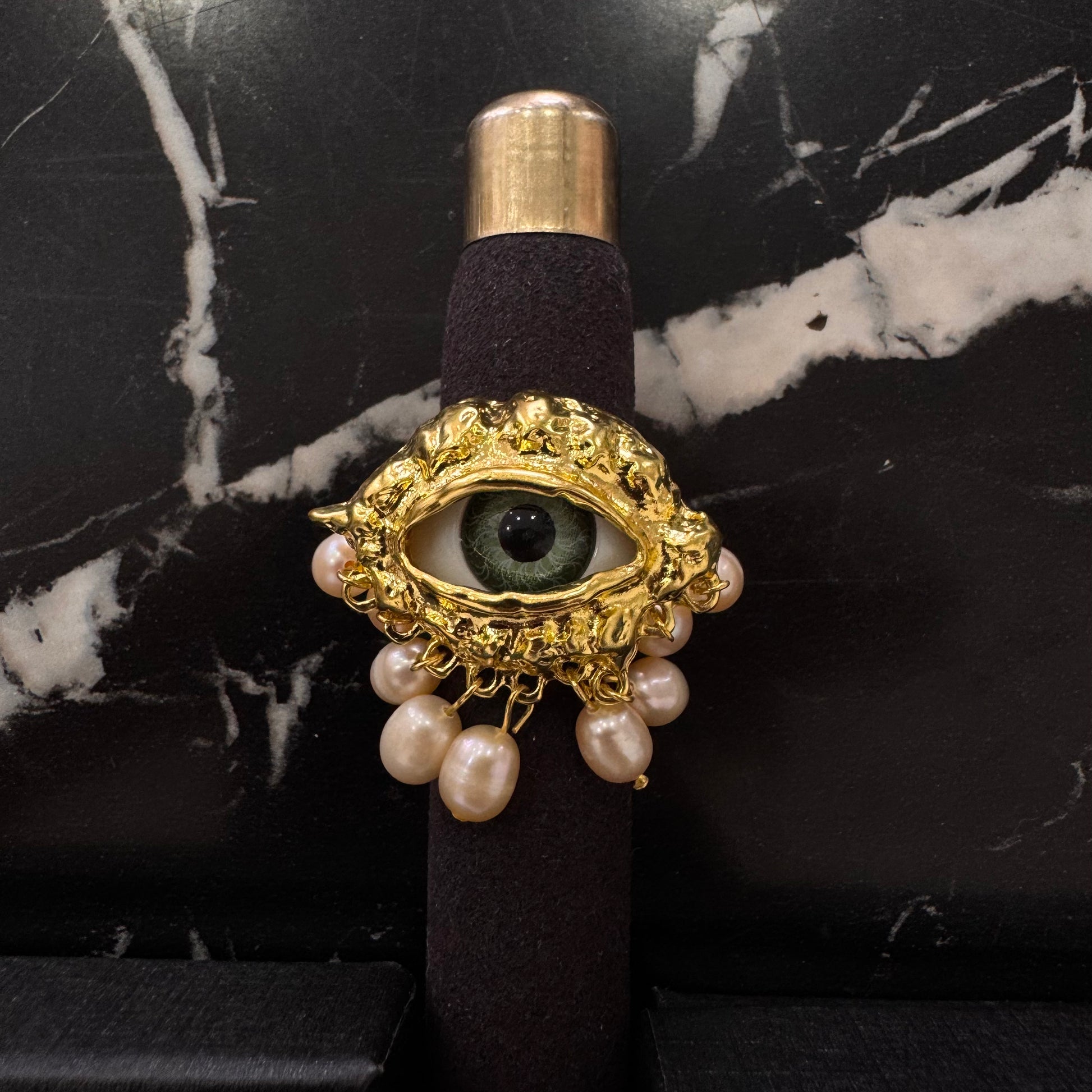 Anillo ajustable con diseño de ojo y perlas