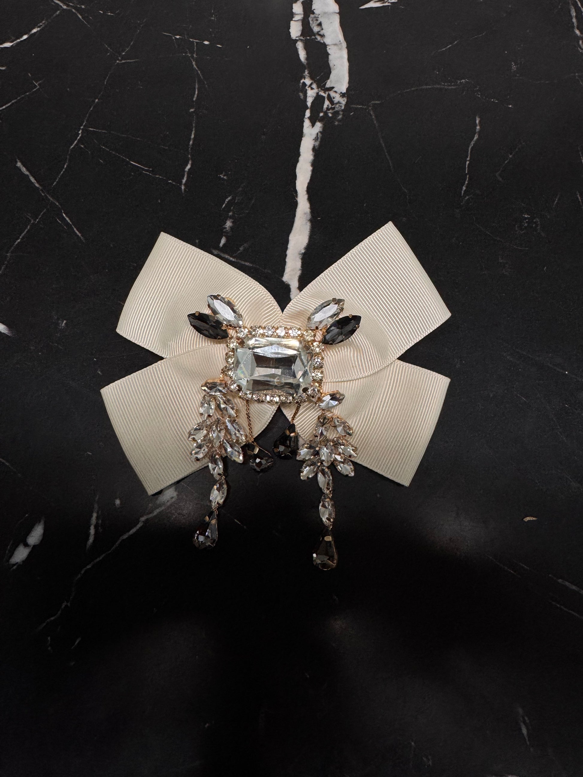 Hermoso moño en color beige con aplicaciones de cristal