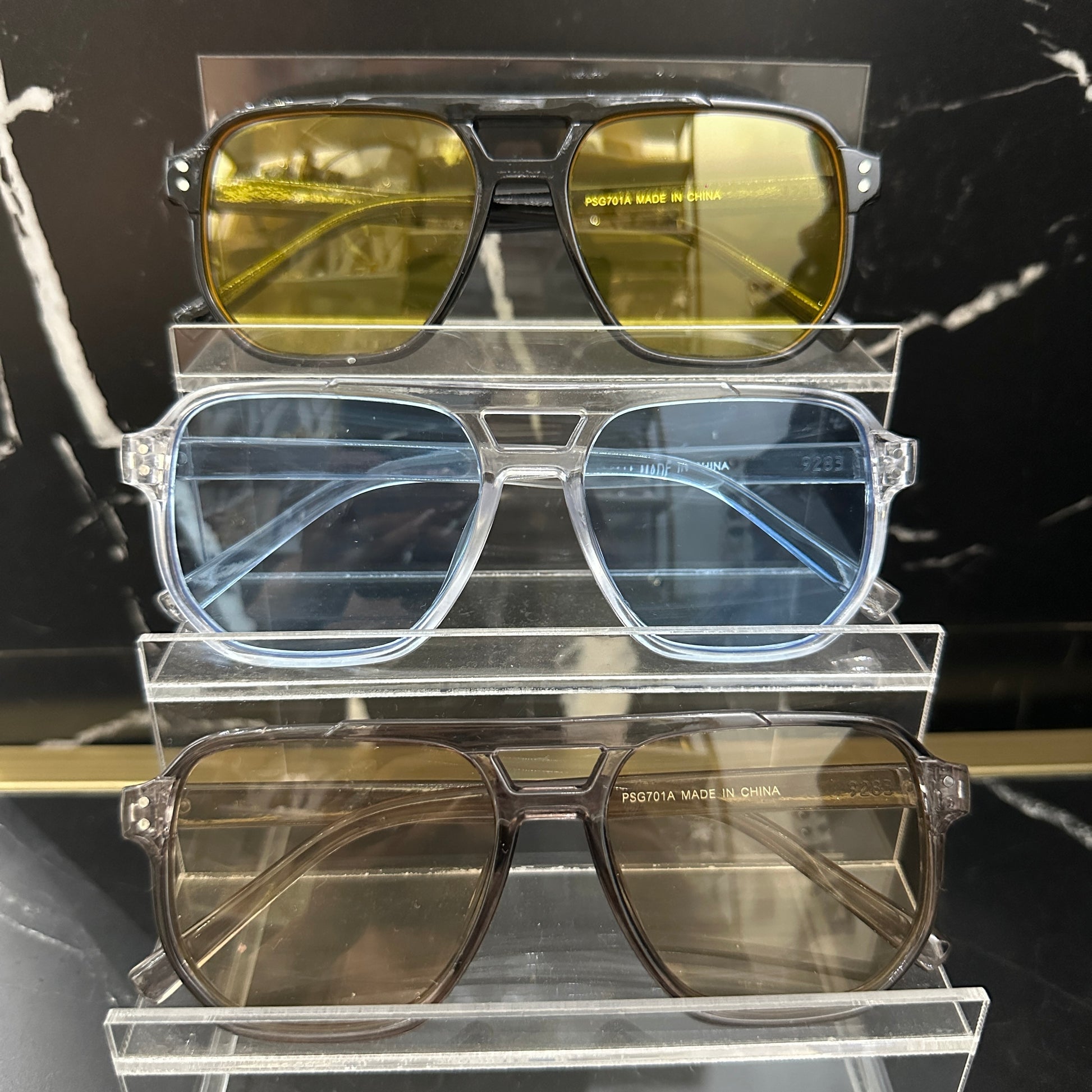 Un diseño fuerte y sofisticado que redefine el clásico aviador. Con monturas en tonos negros, translúcidos y cafés, estos lentes ofrecen una estética moderna con un toque elegante. Sus lentes en tonos cálidos aportan estilo y funcionalidad, ideales para elevar cualquier outfit.