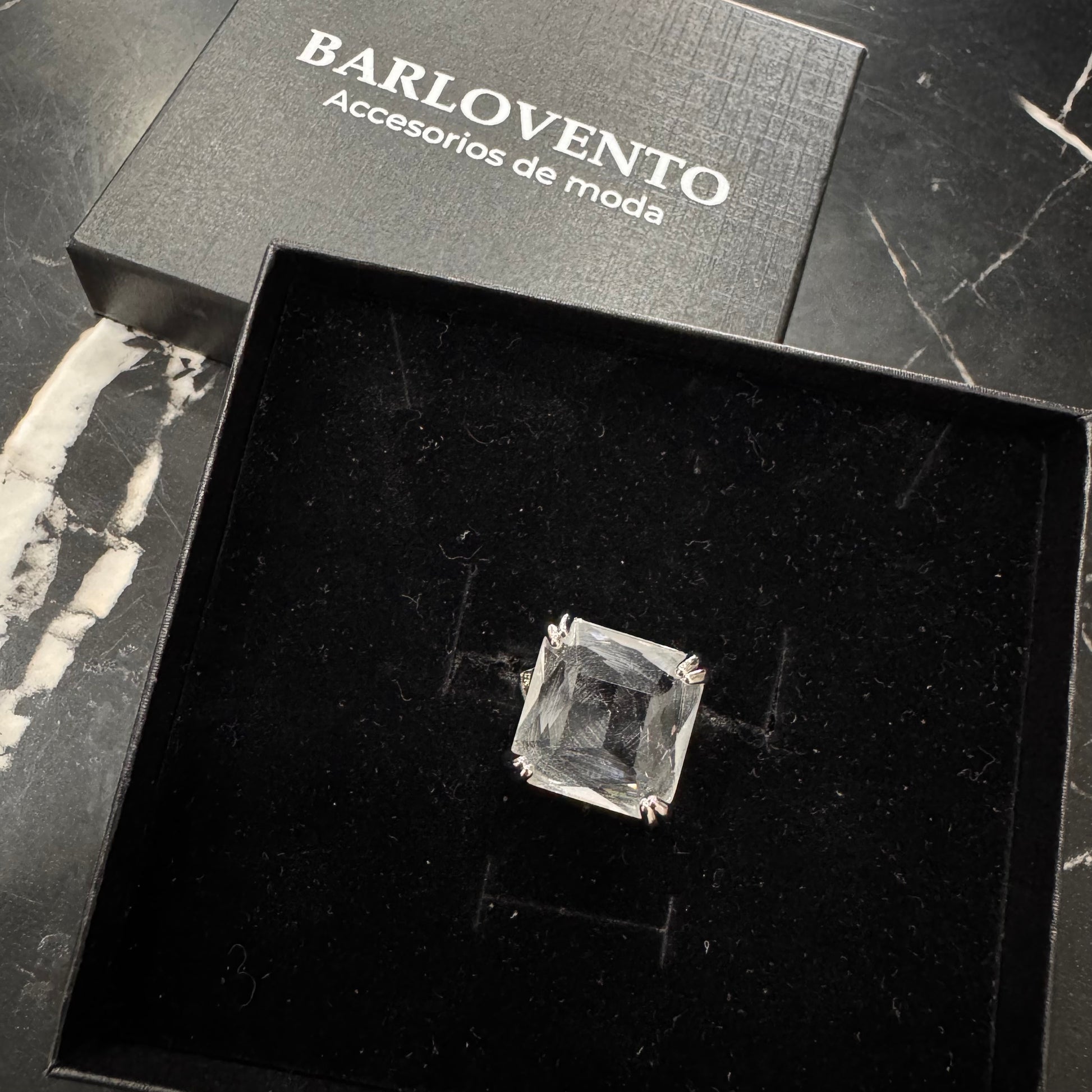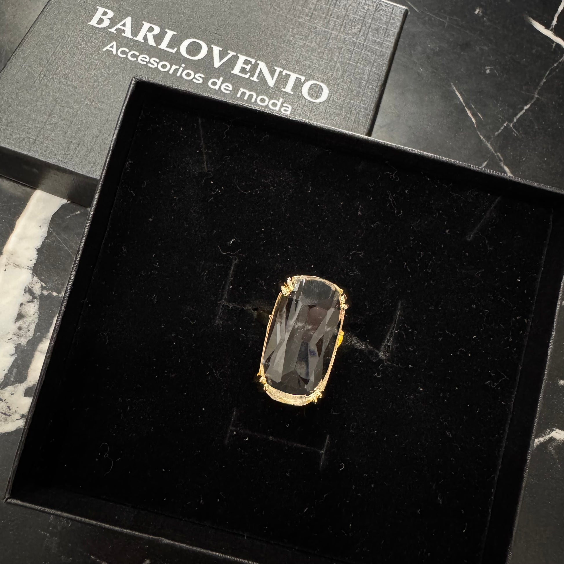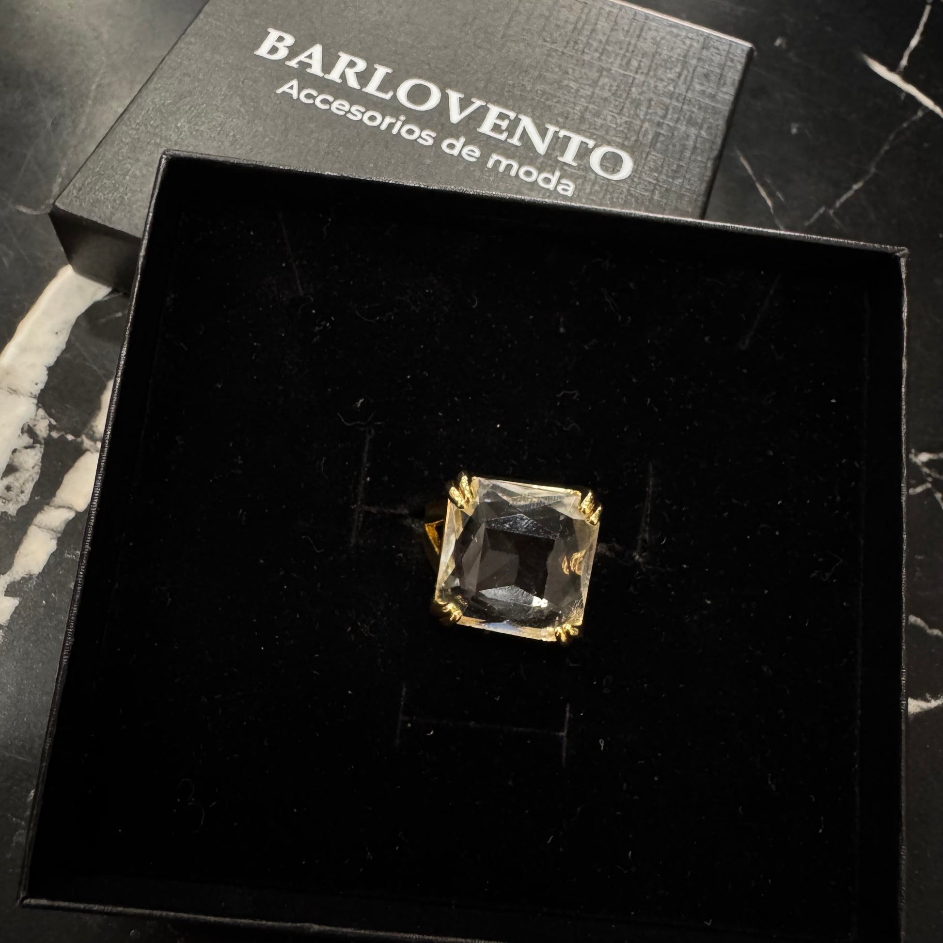 Anillo en base de rodio/ oro laminado con cristal transparente