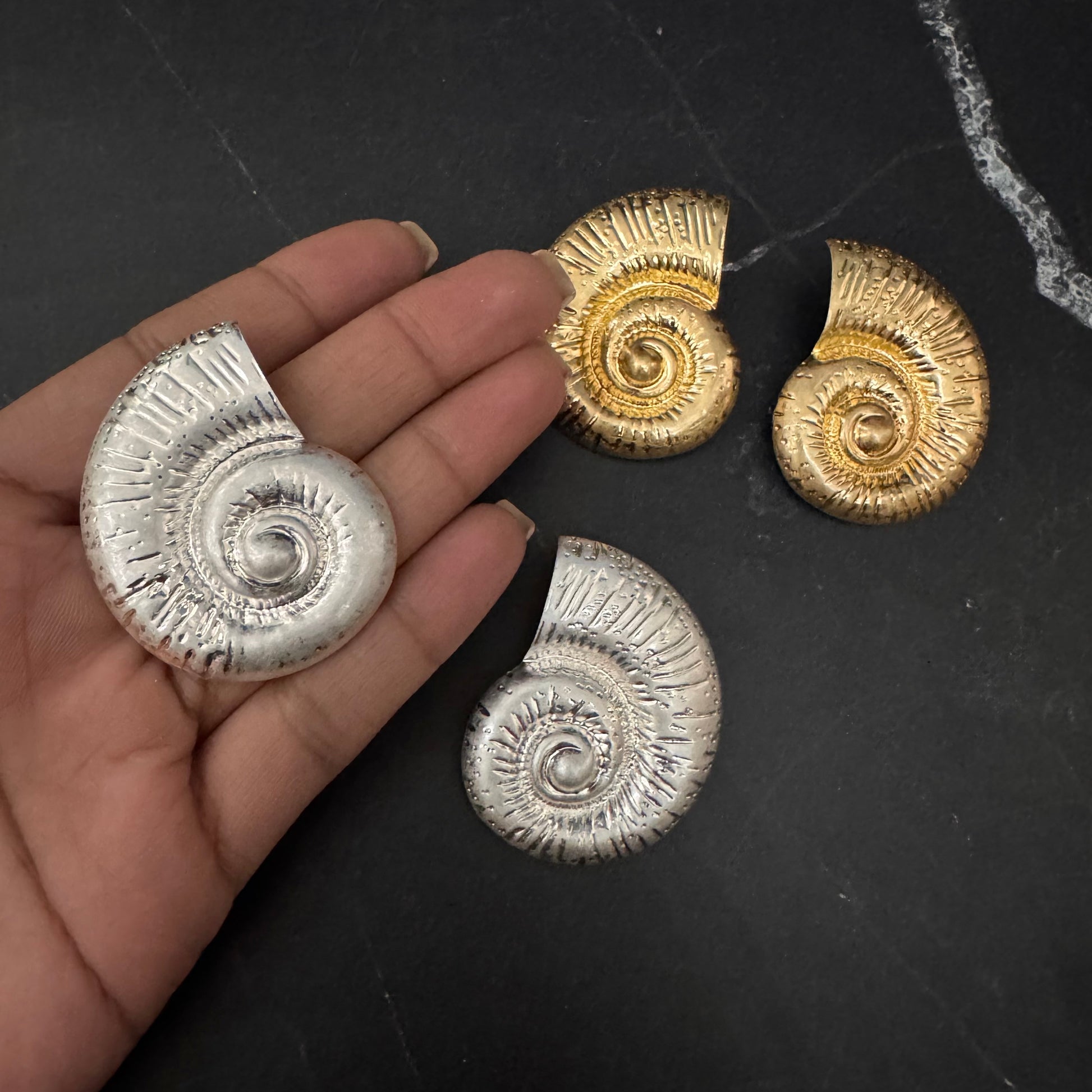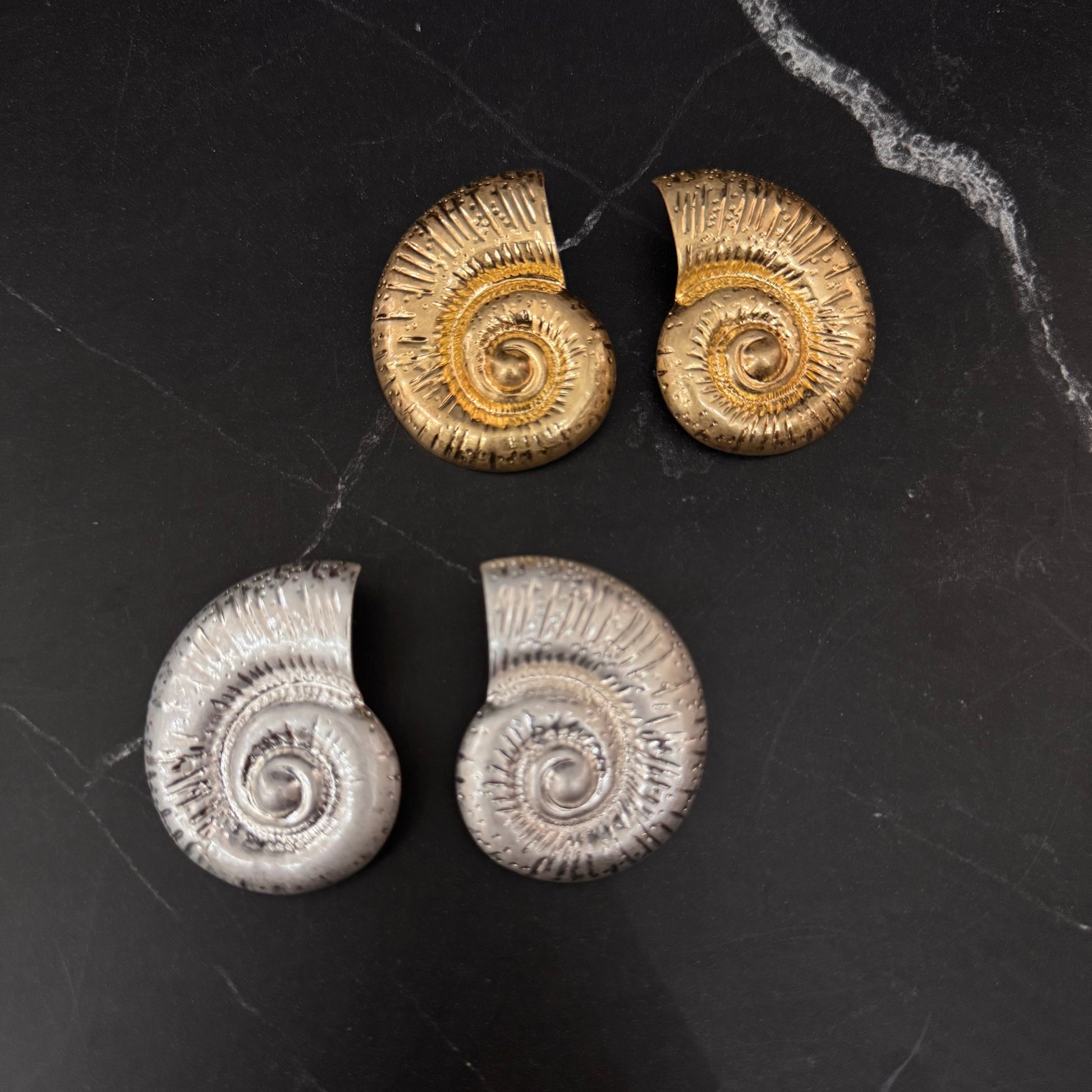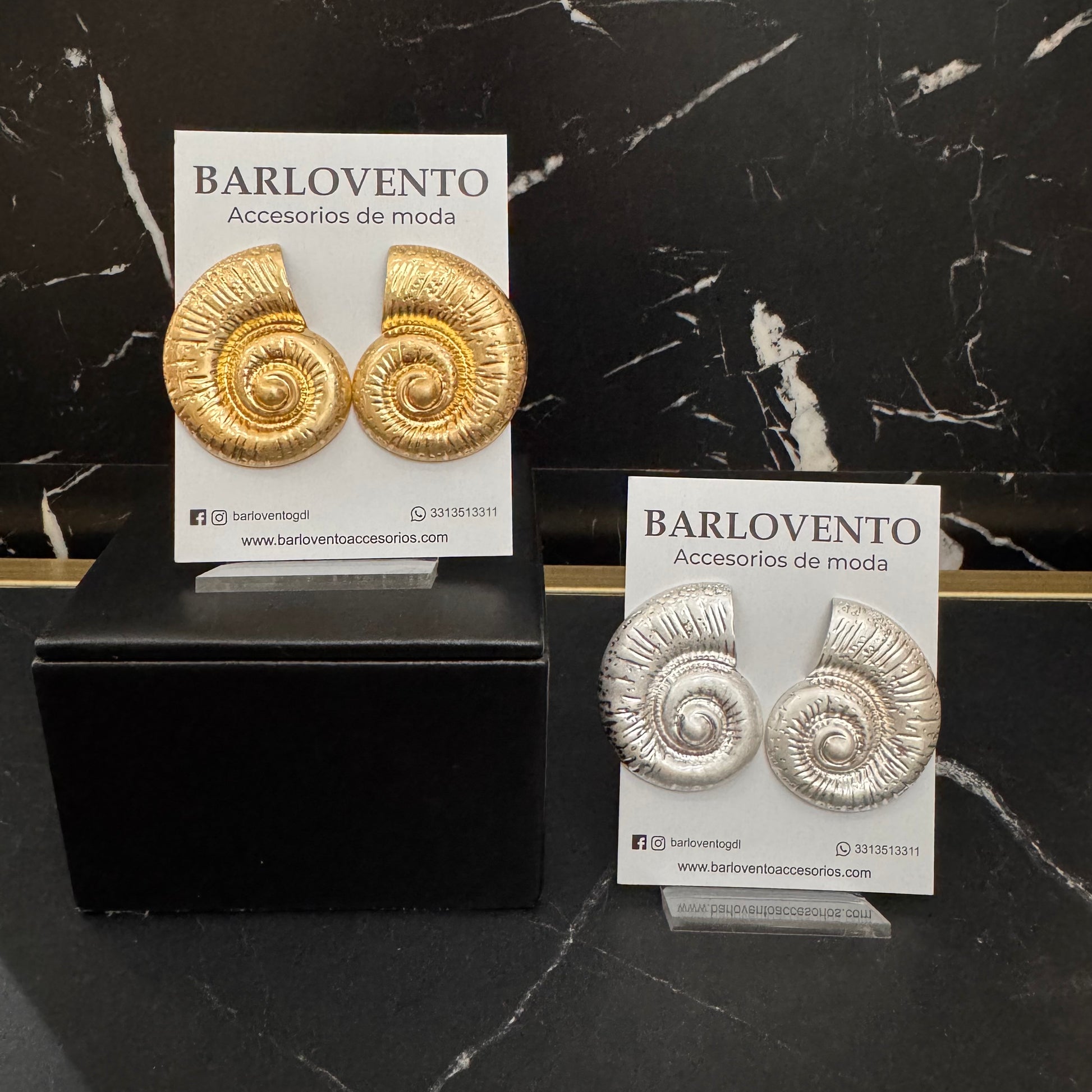 Los aretes BRAN, disponibles en dorado y plateado, presentan un diseño chunky en forma de caracol. Esta forma distintiva no solo aporta un estilo moderno, sino que su acabado metálico refleja la luz, permitiendo que tu look resalte en diversas ocasiones, aumentando su versatilidad.