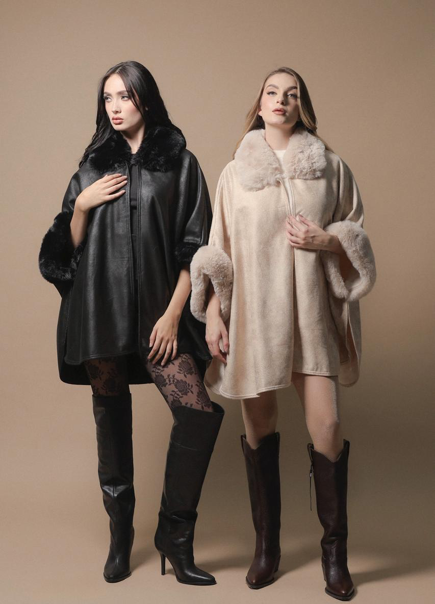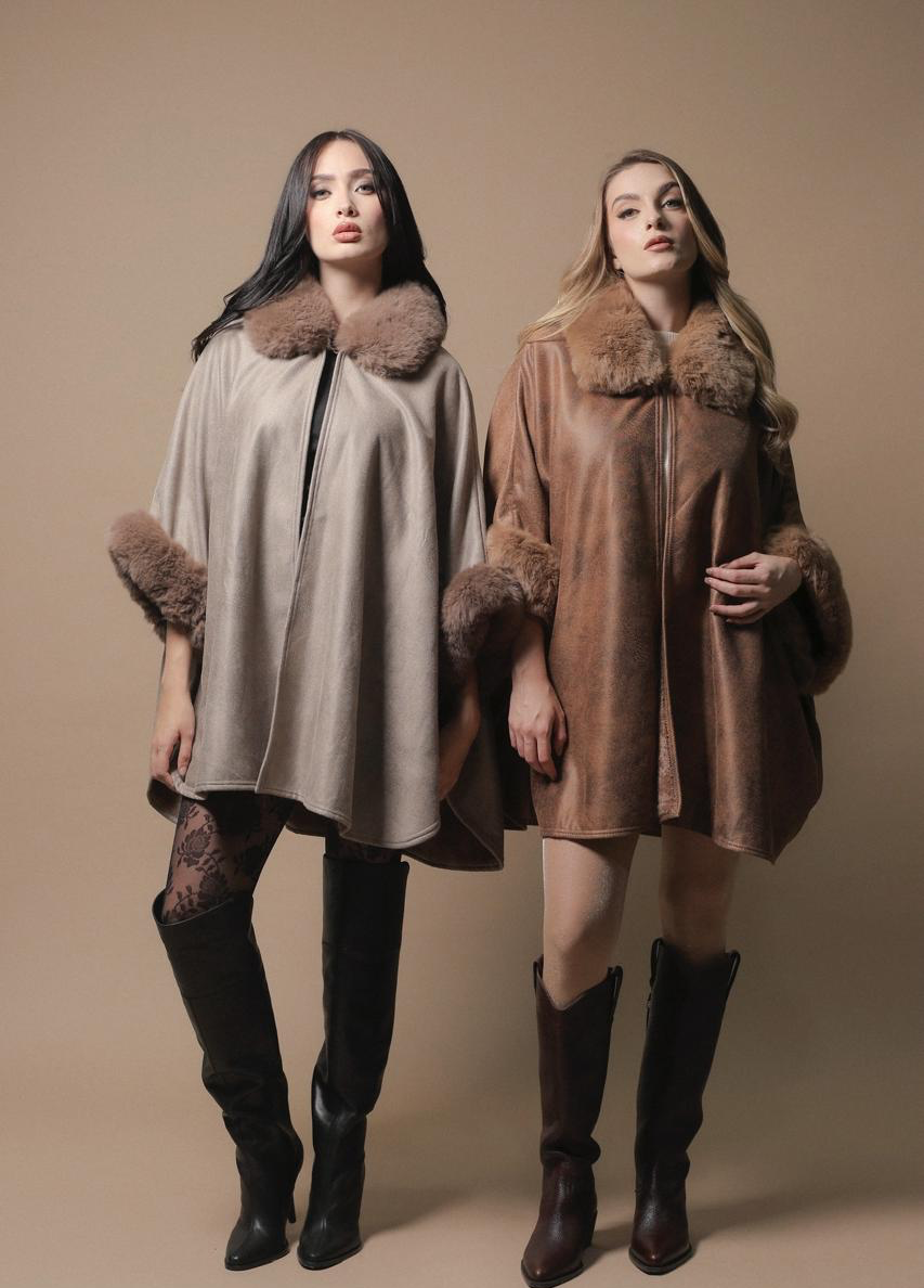 Abrigo unitalla tipo capa con cuello y mangas en peluche