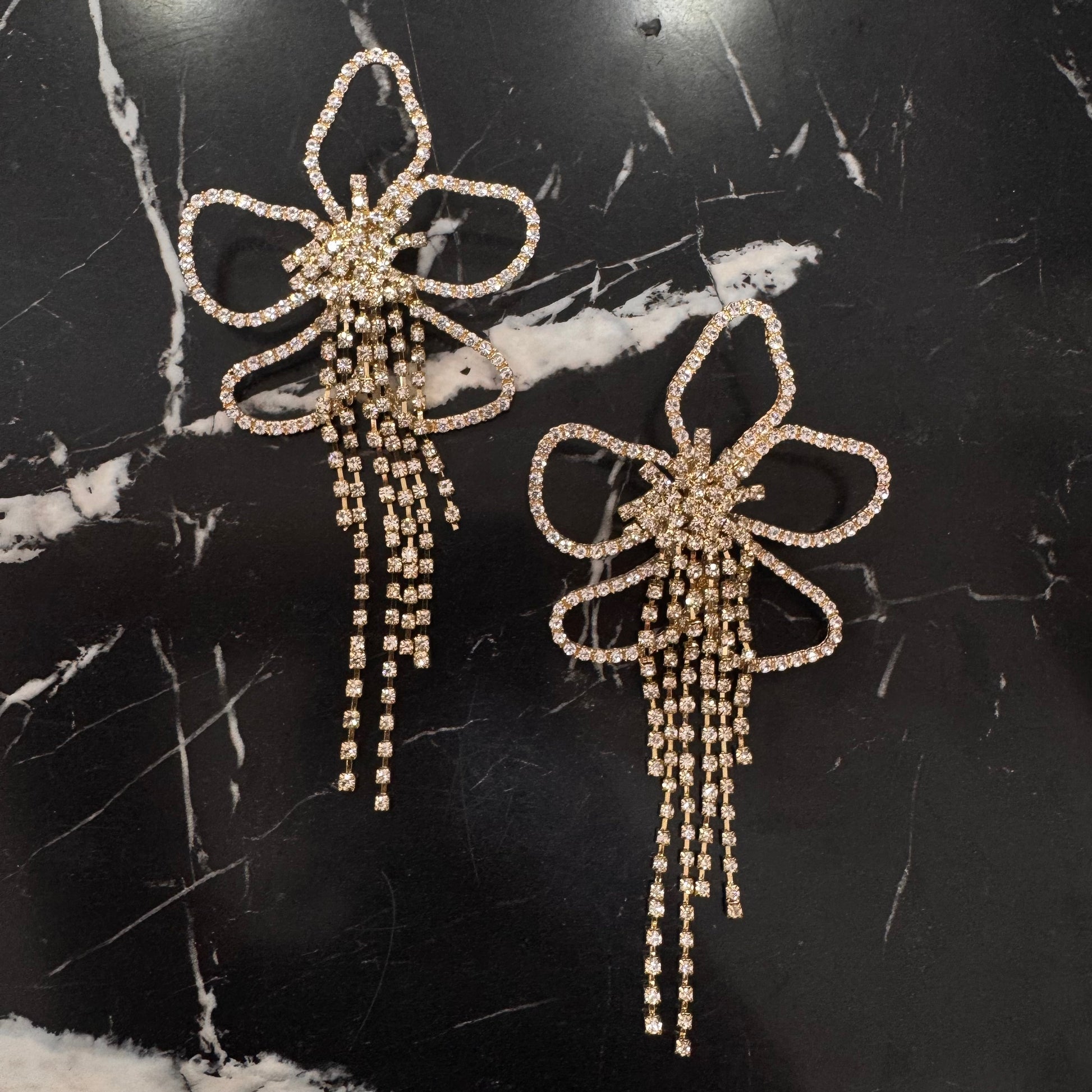 Los maxi aretes de cristal de CASCADA FLOR son una verdadera obra de arte para tus orejas. Con su base dorada y cristal claro en forma de flor con cascada, estos aretes son el accesorio perfecto para añadir un toque de elegancia y sofisticación a cualquier atuendo. Haz una declaración de moda con estos impresionantes aretes.
