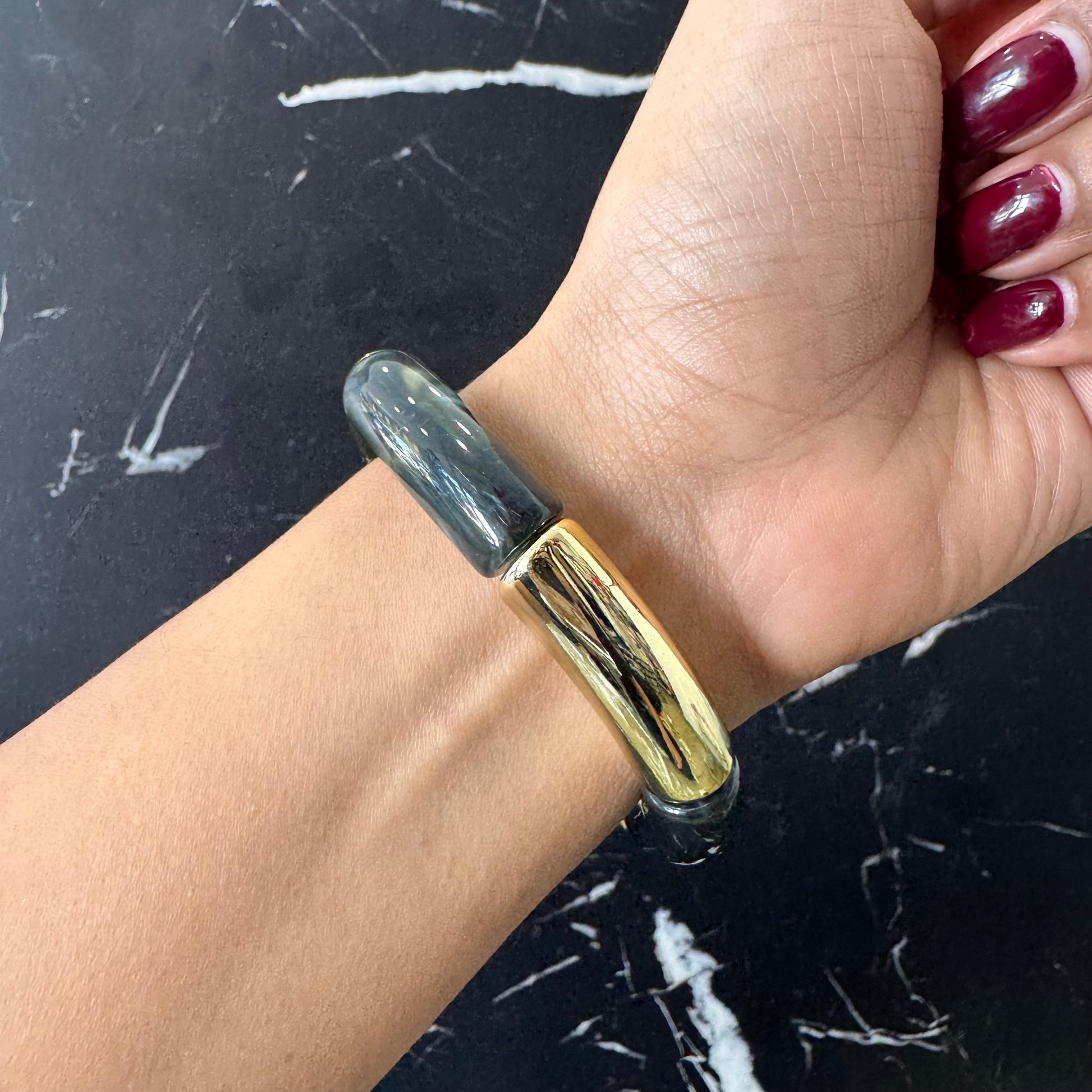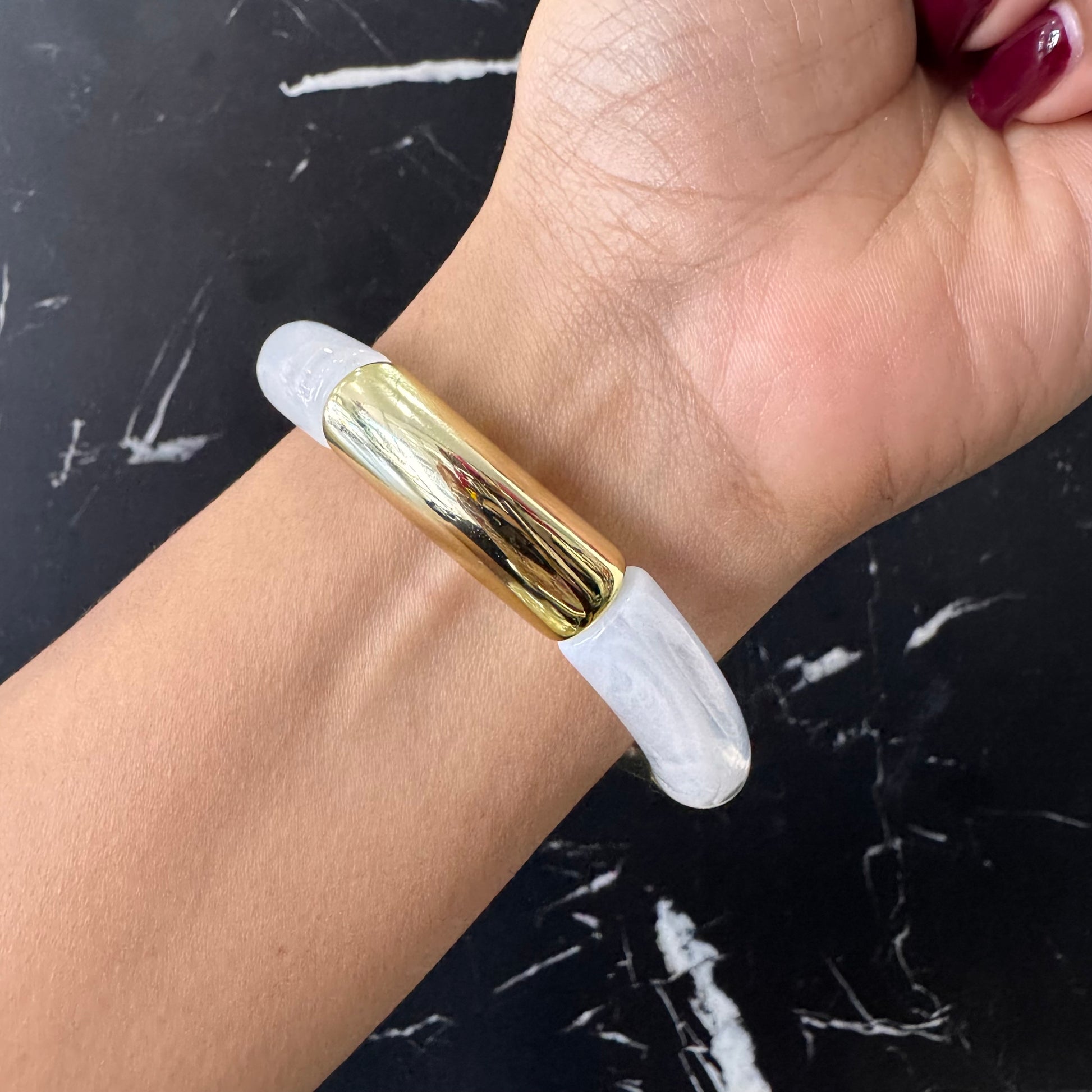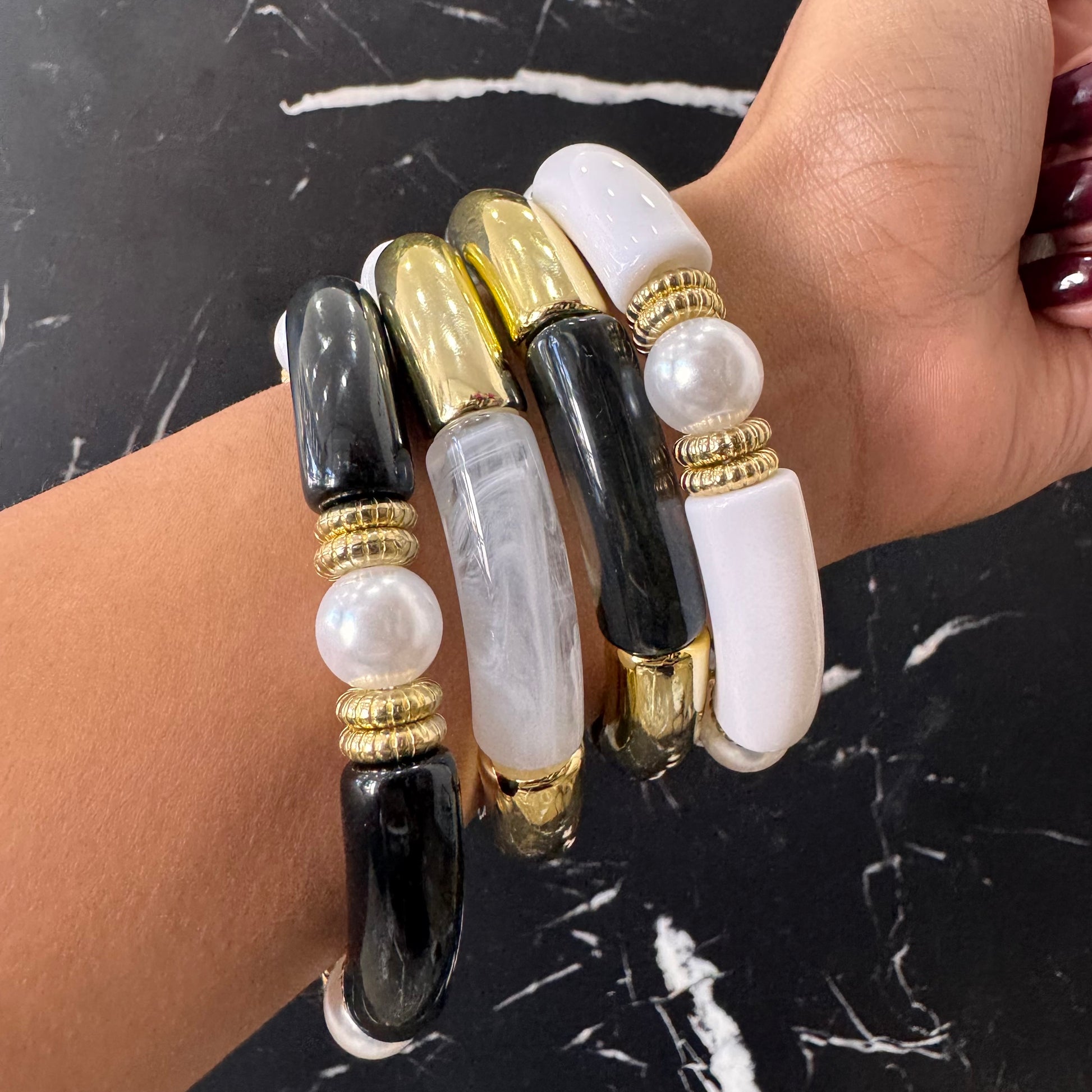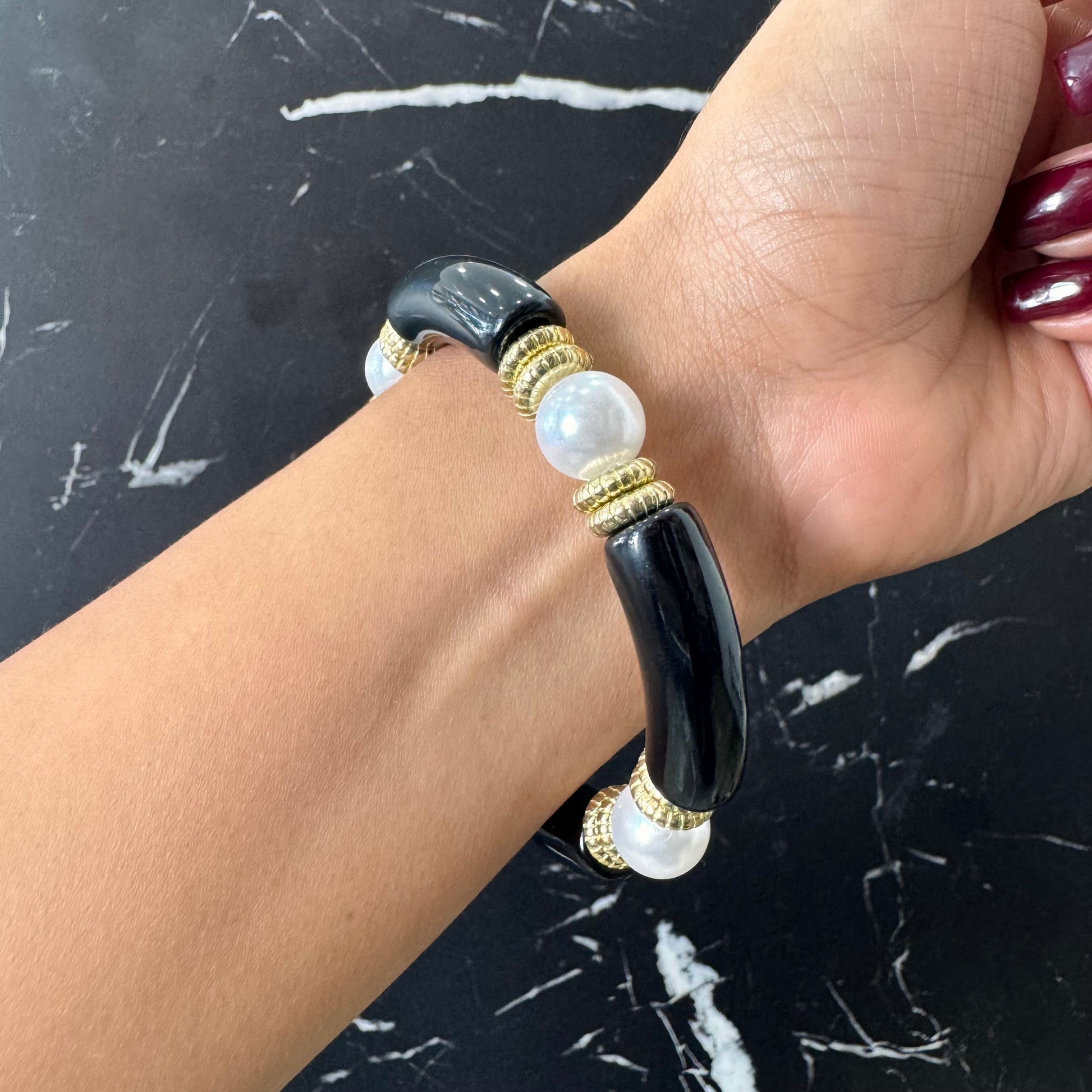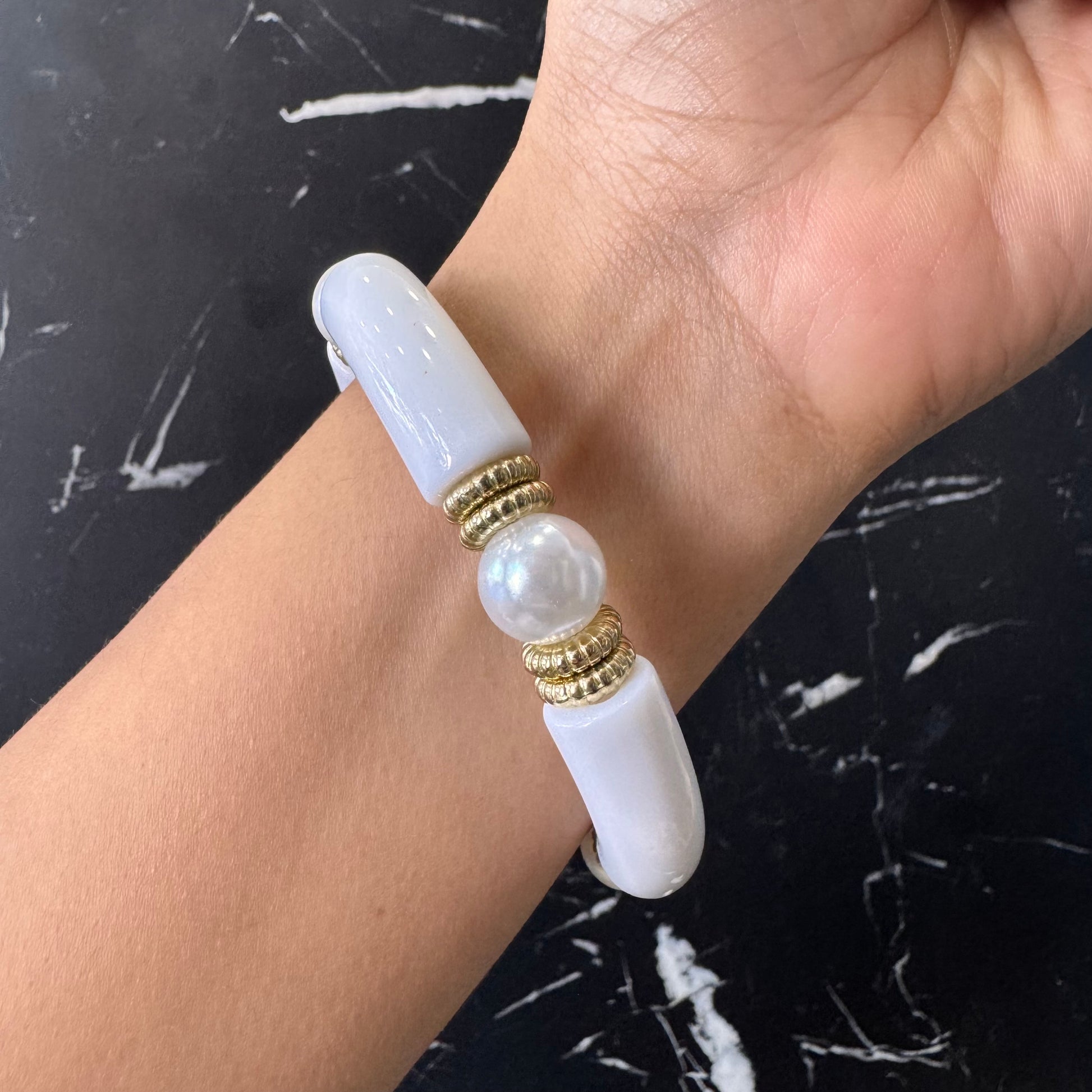 Pulsera elástica con cuentas acrílicas y detalles en perla
