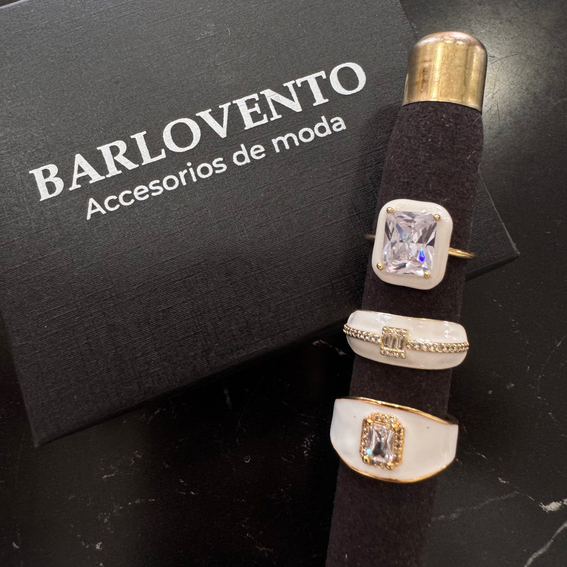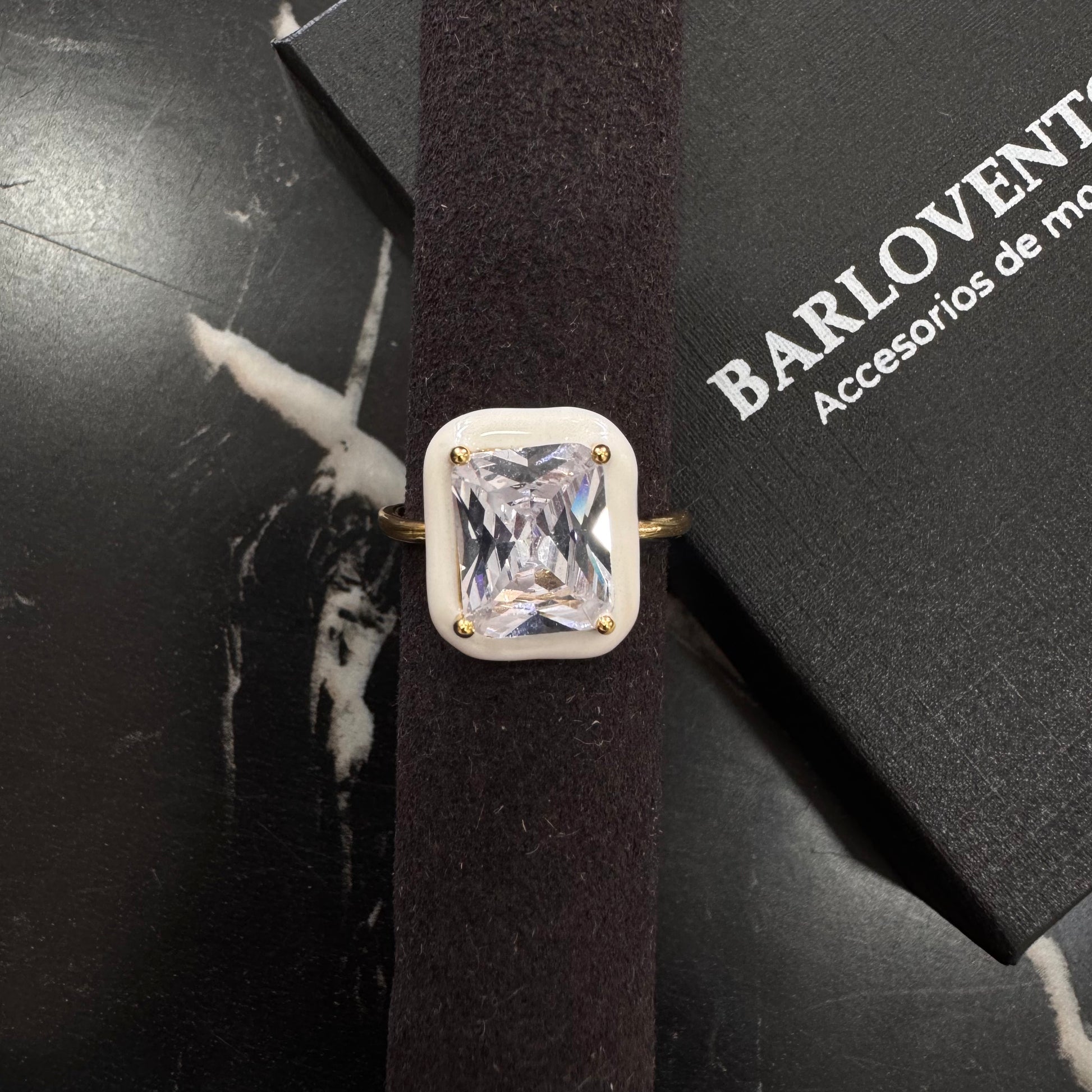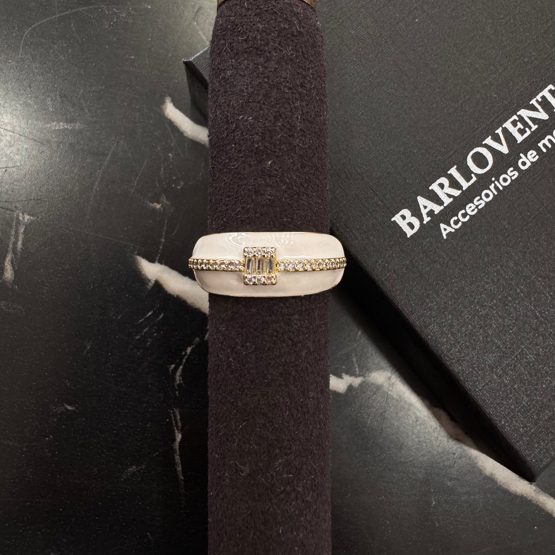Hermosos anillos ajustables, con diseño en oro laminado y esmaltado color blanco