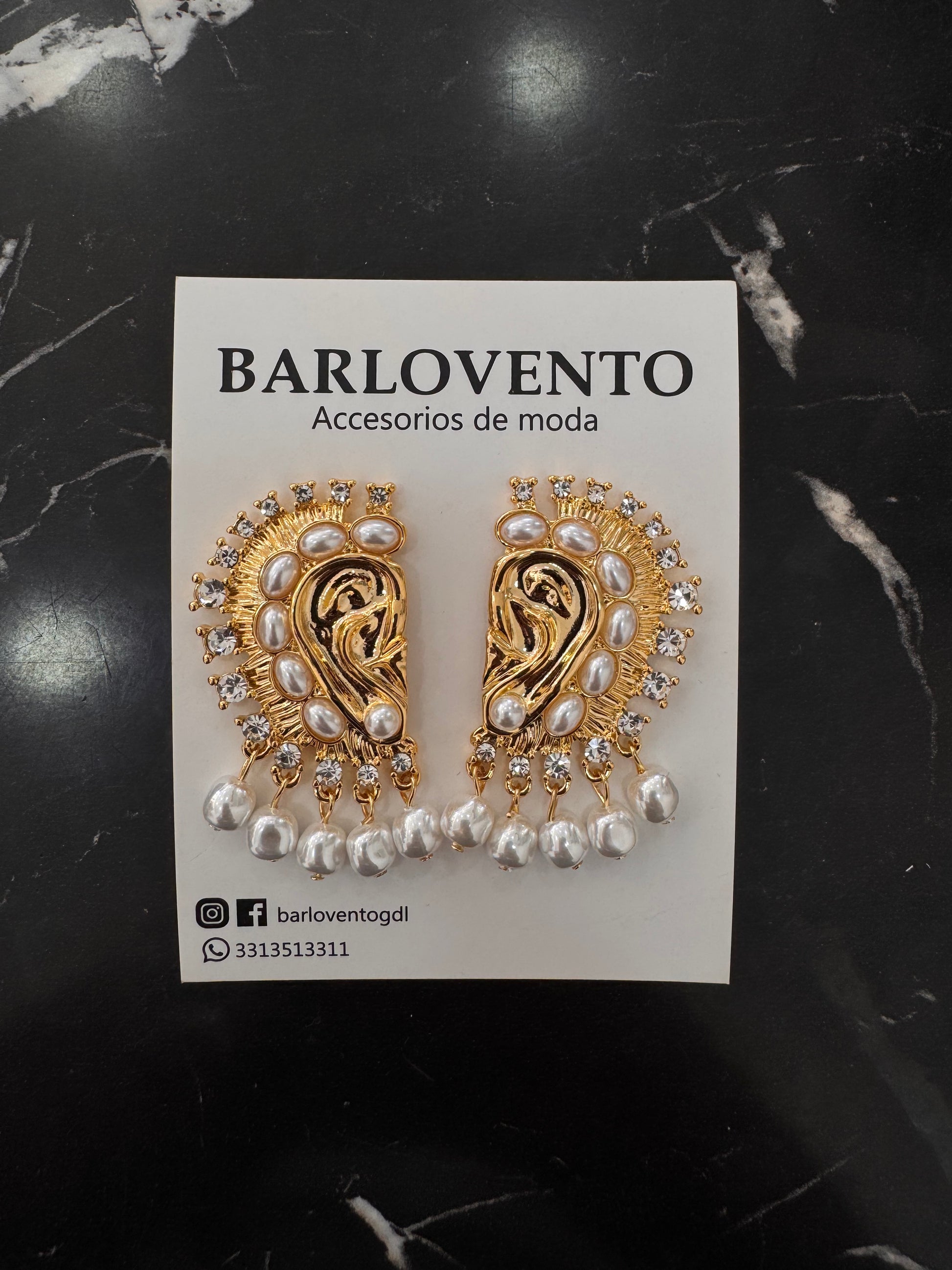Aretes con diseño vanguardista, combinando perlas con dorado