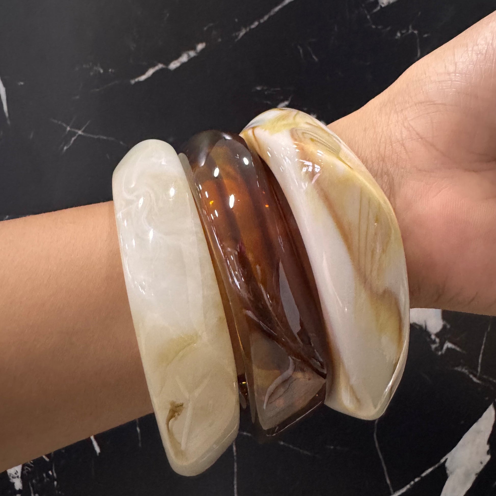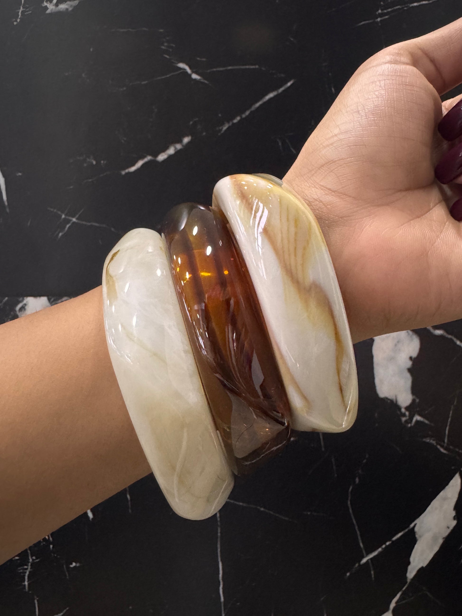 ¡Embellece tu muñeca con el set de 3 pulseras mármol acrílico de EDENA! Agrega un toque moderno y sofisticado a tu look con estas pulseras únicas y elegantes. Perfectas para cualquier ocasión, ¡complétalo con tu estilo personal!