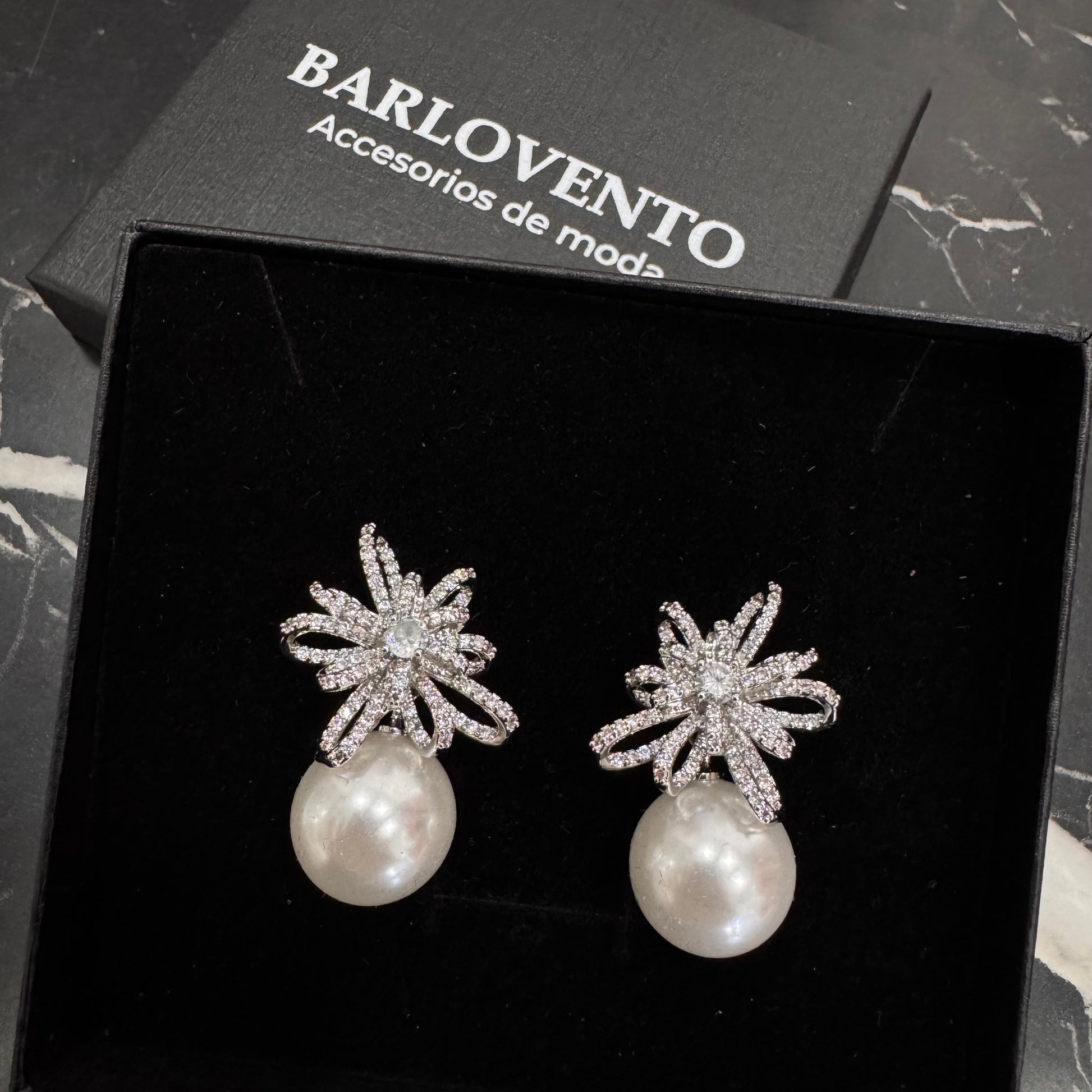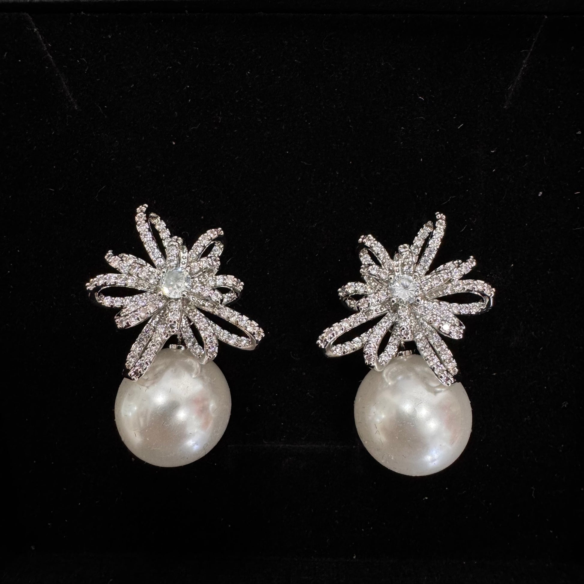 ARETE DE RODIO CON ZIRCONIAS Y PERLA