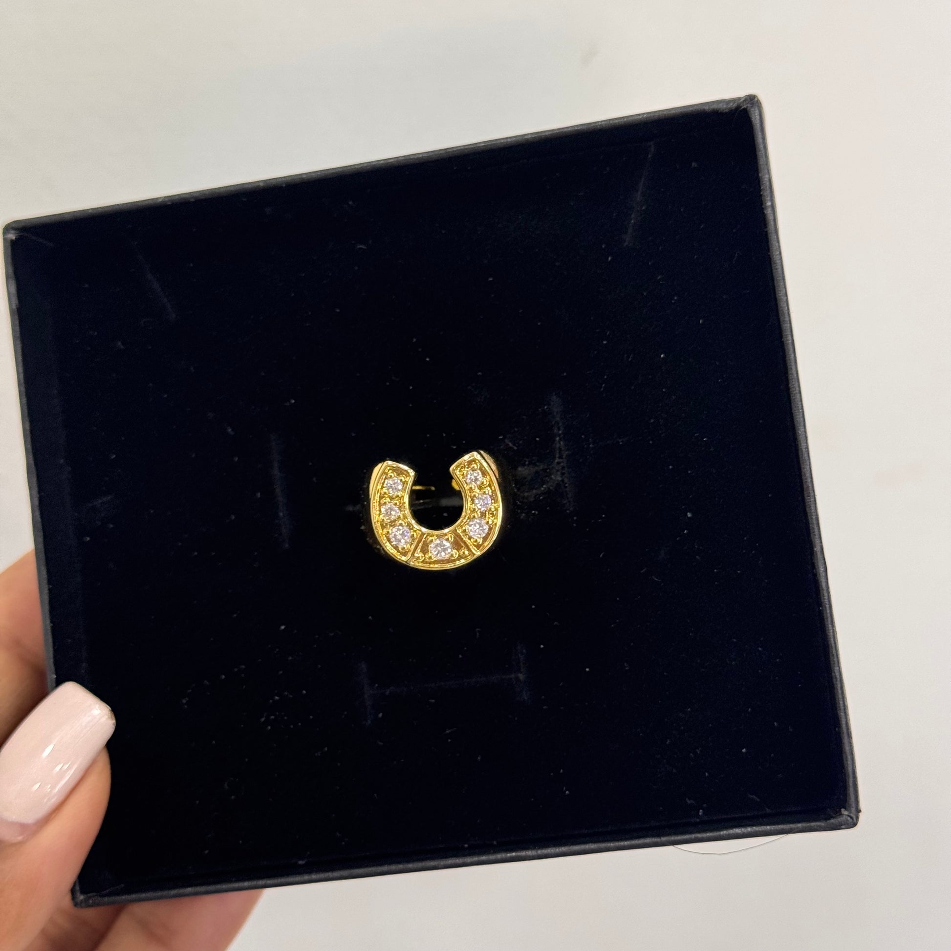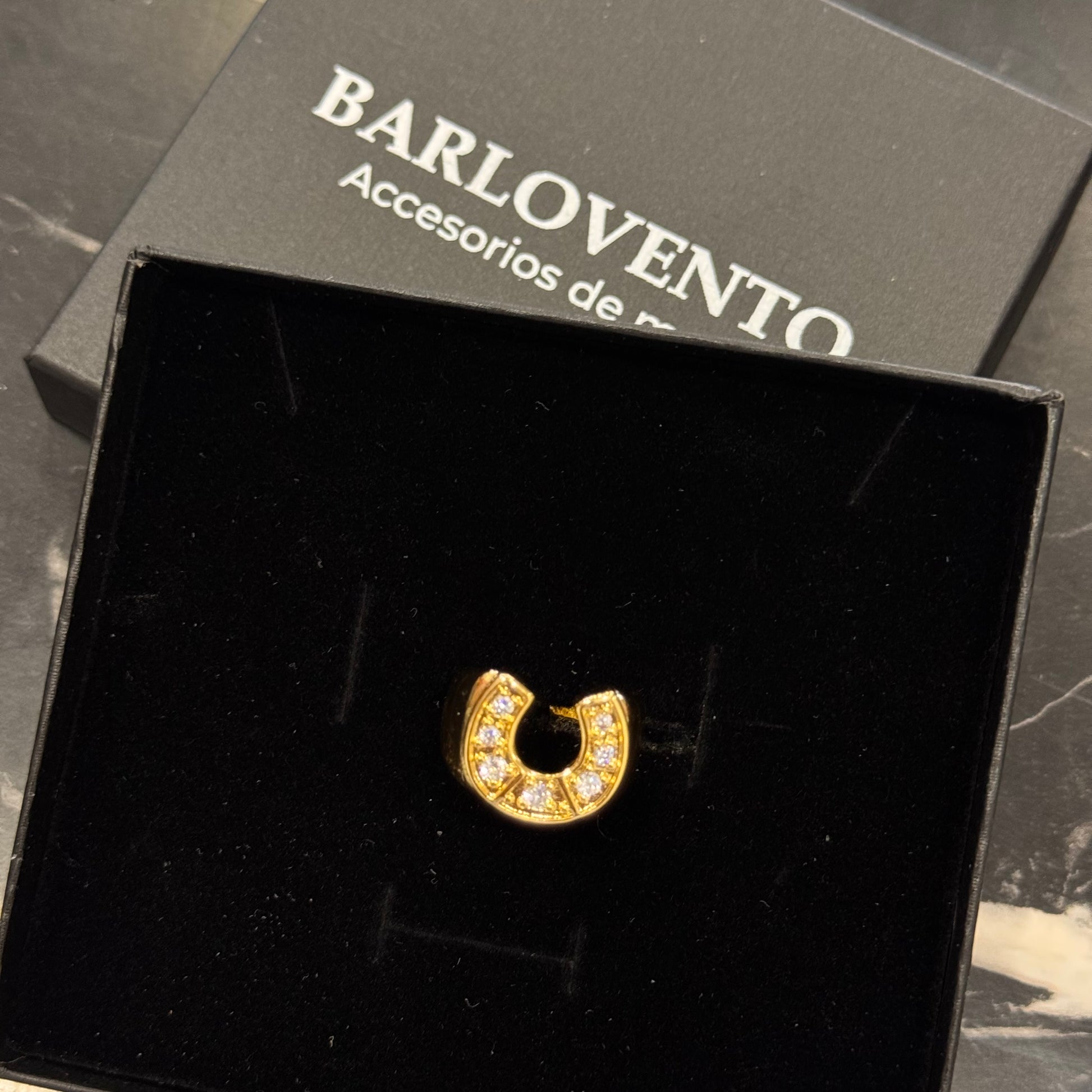 Lleva la buena suerte siempre contigo con este elegante anillo en forma de herradura. Hecho de oro laminado y adornado con zirconias brillantes, este anillo es una pieza de joyería que no puede faltar en tu colección. Haz una declaración de estilo y sofisticación con HERRADURA.