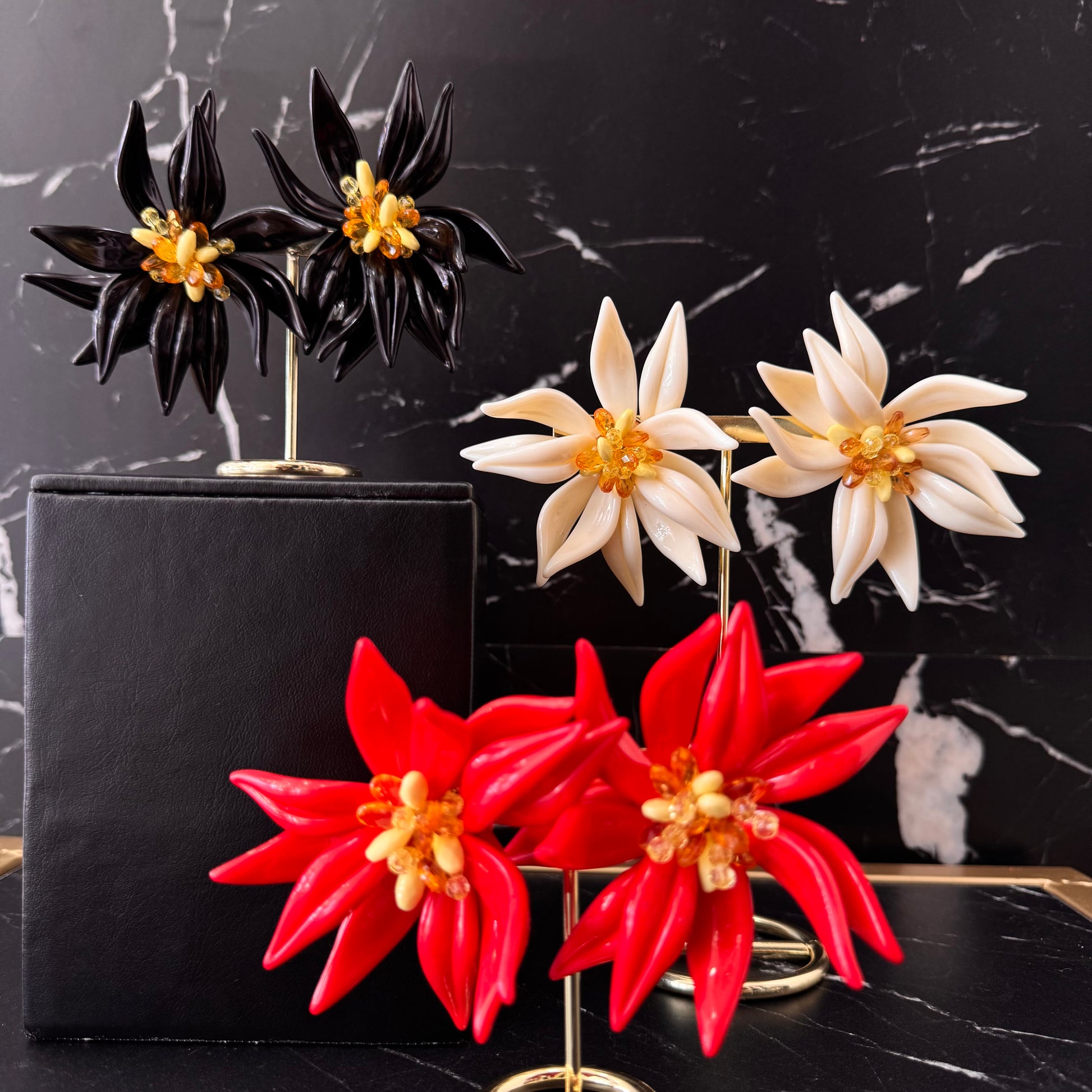 ¡Destaca con la elegante arete IRINA con un centro en forma de flor disponible en blanco, negro y rojo! Añade un toque de feminidad y sofisticación a tu outfit con este detalle único. ¡Complementa cualquier atuendo con esta joya versátil y encantadora!