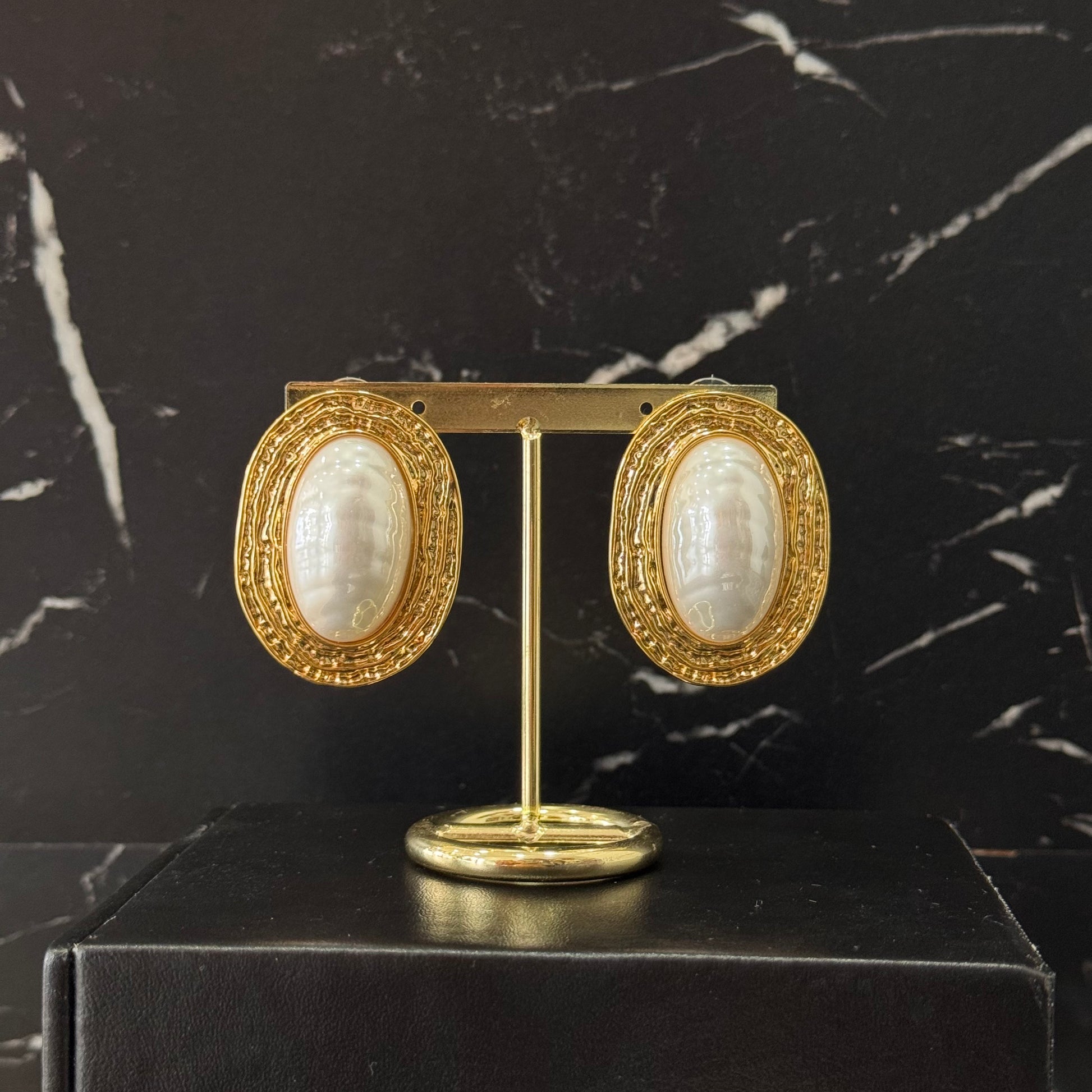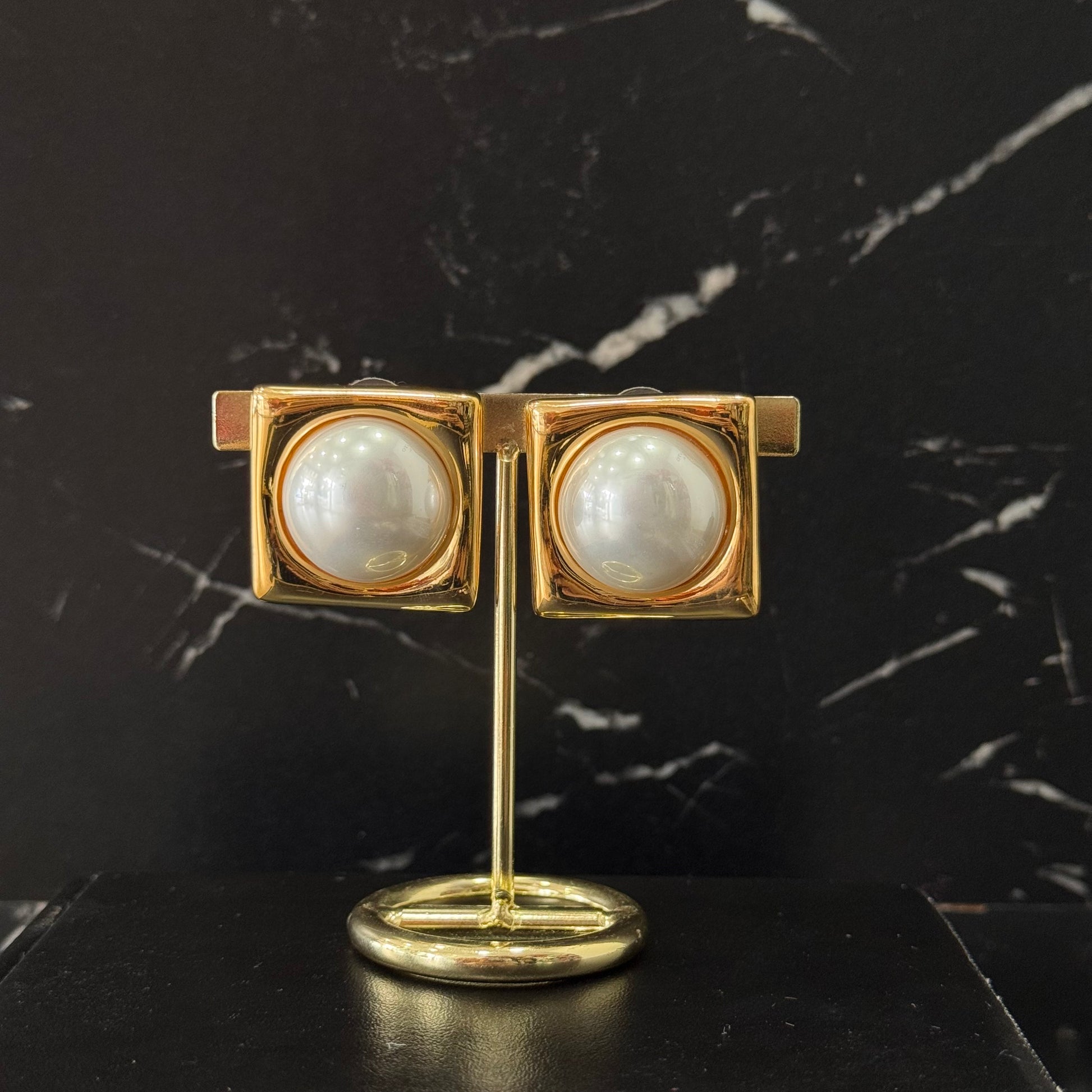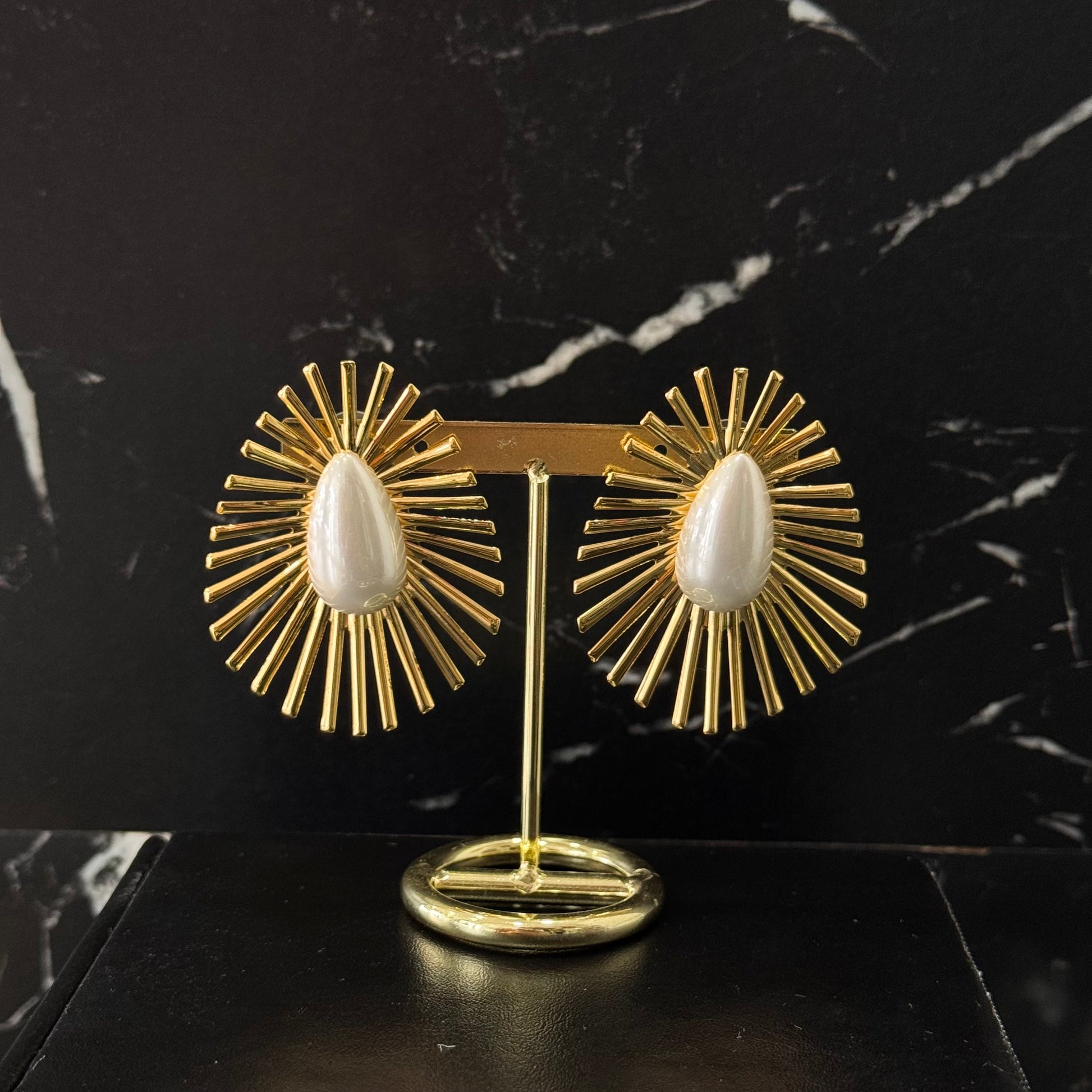 ARETE DE ORO LAMINADO CON DETALLE EN PERLA