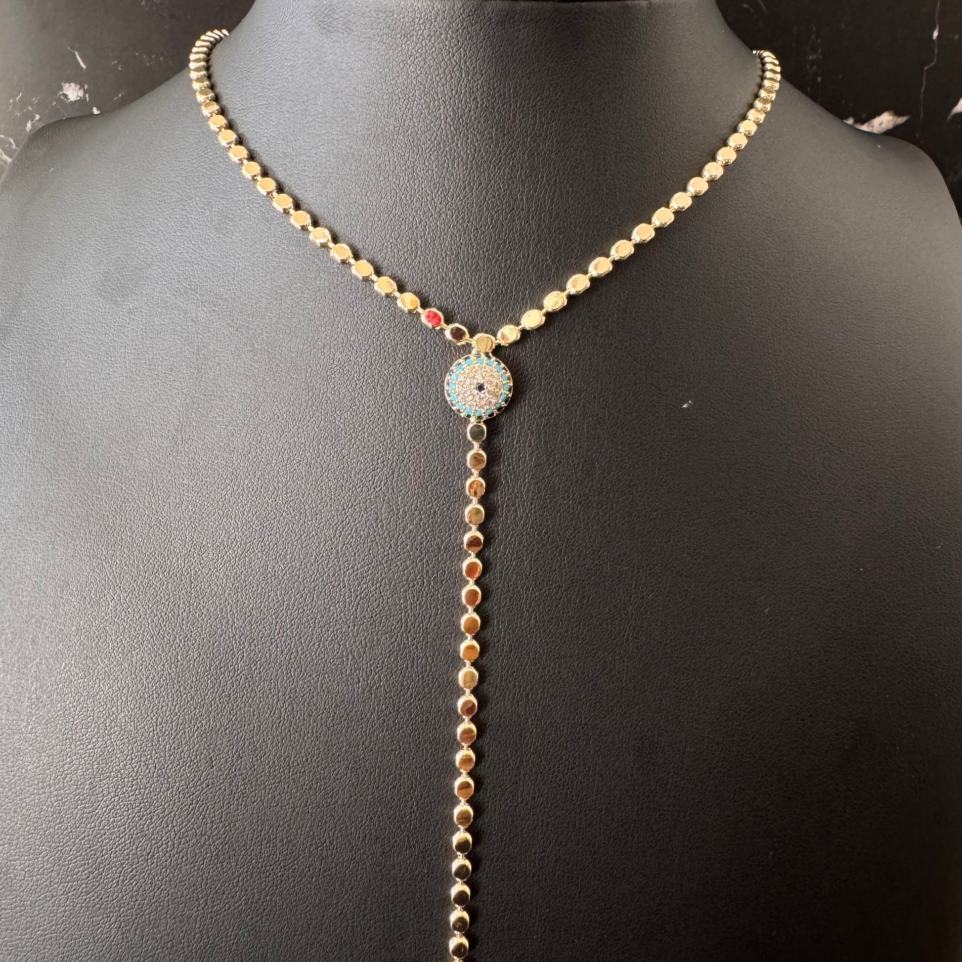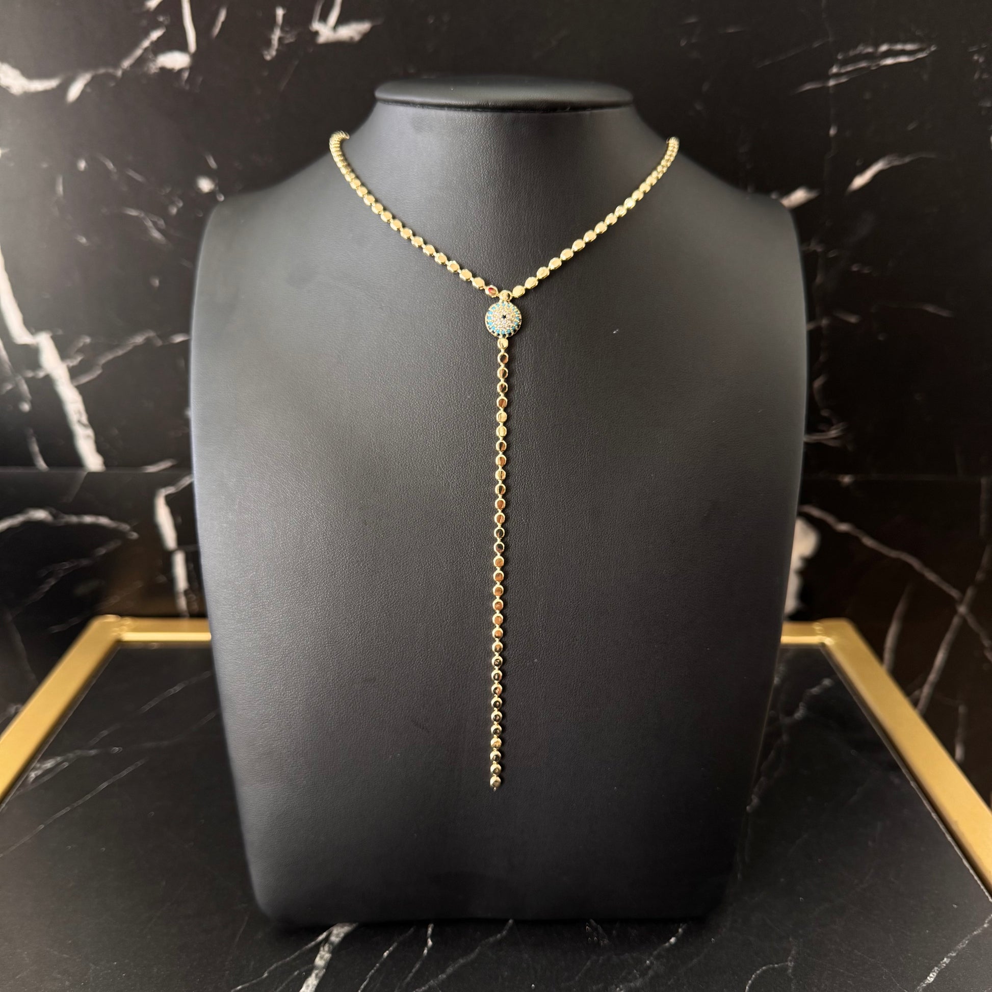 COLLAR EXTRA LARGO TIPO CORBATÍN CON DIJE DE OJO TURCO CON ZIRCONIAS
