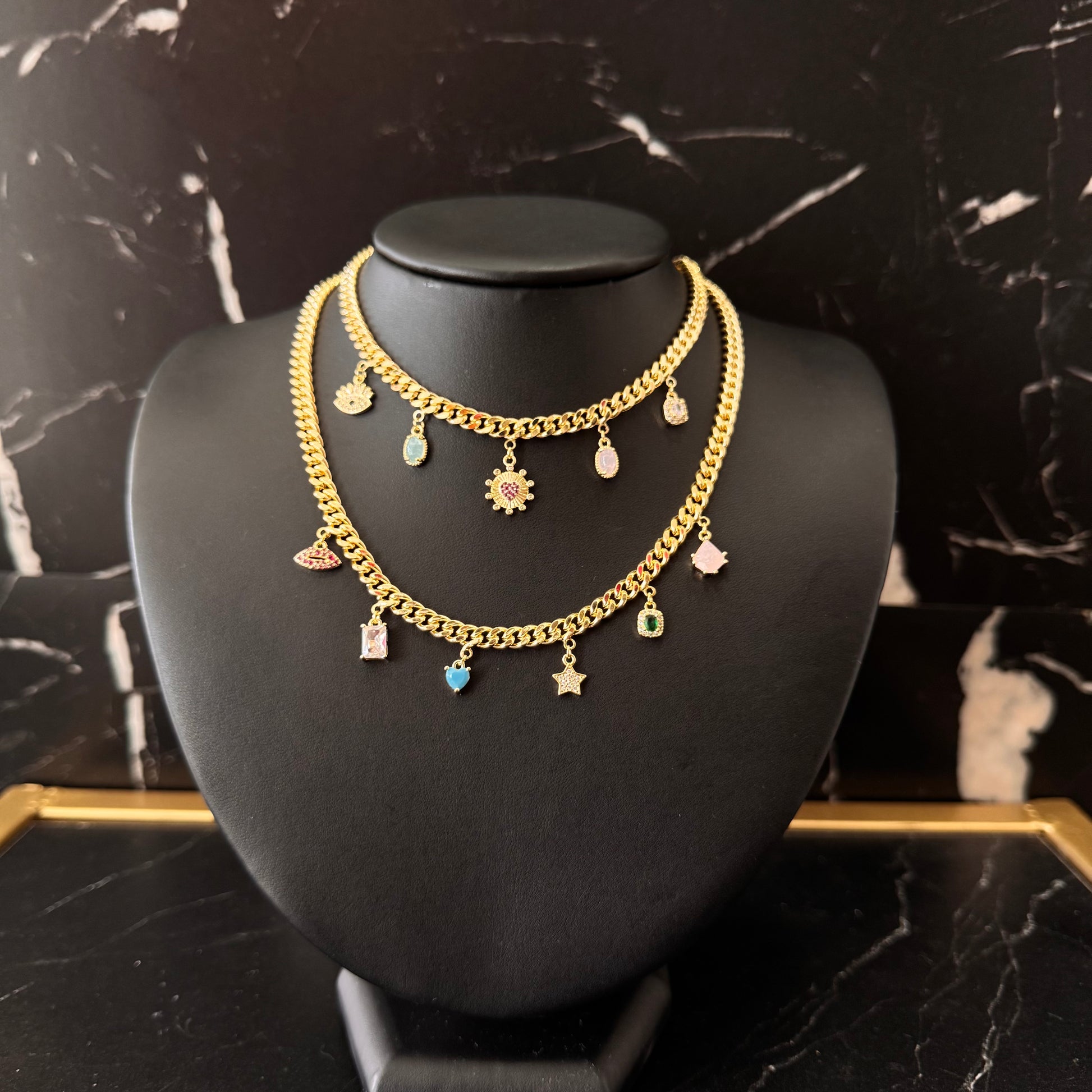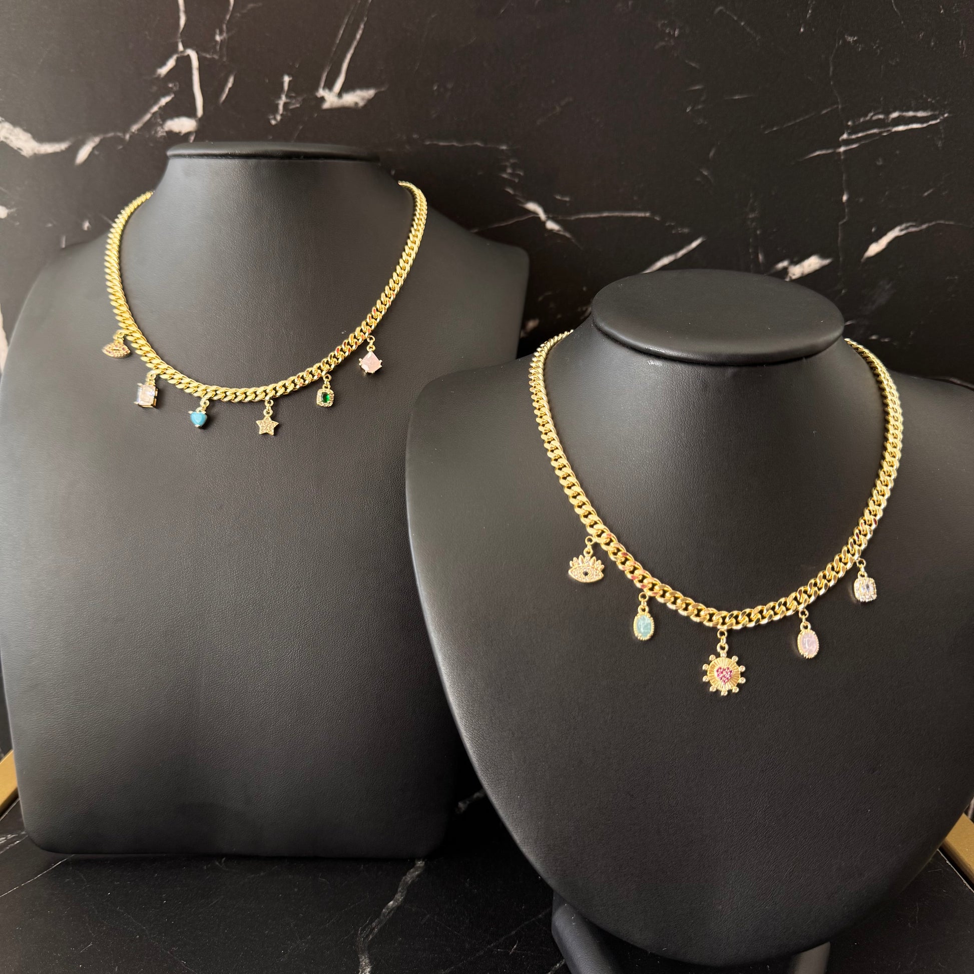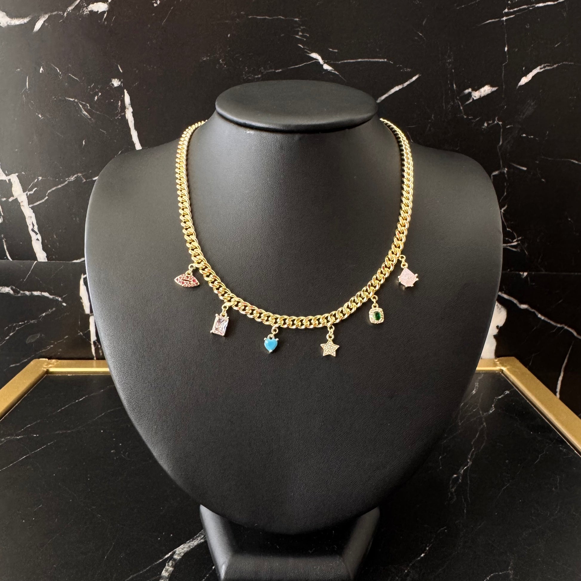 COLLAR DE ORO LAMINADO CON CHARMS CON ZIRCONIAS