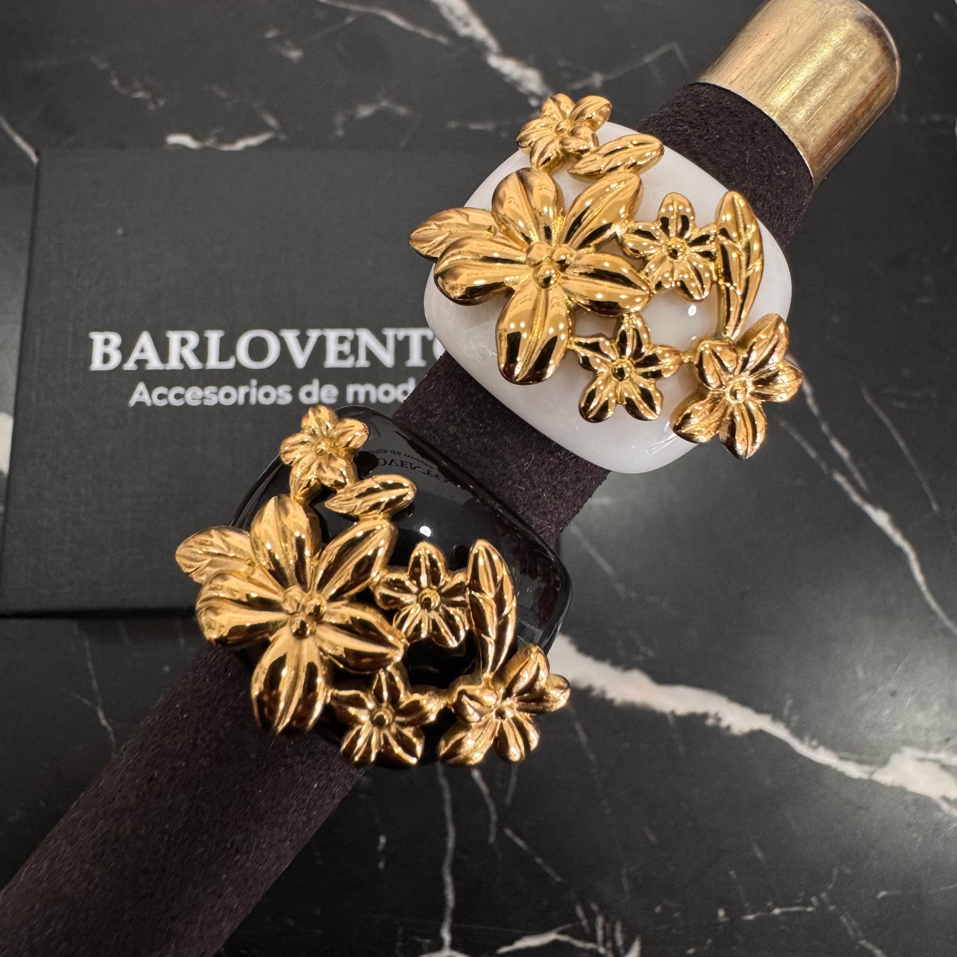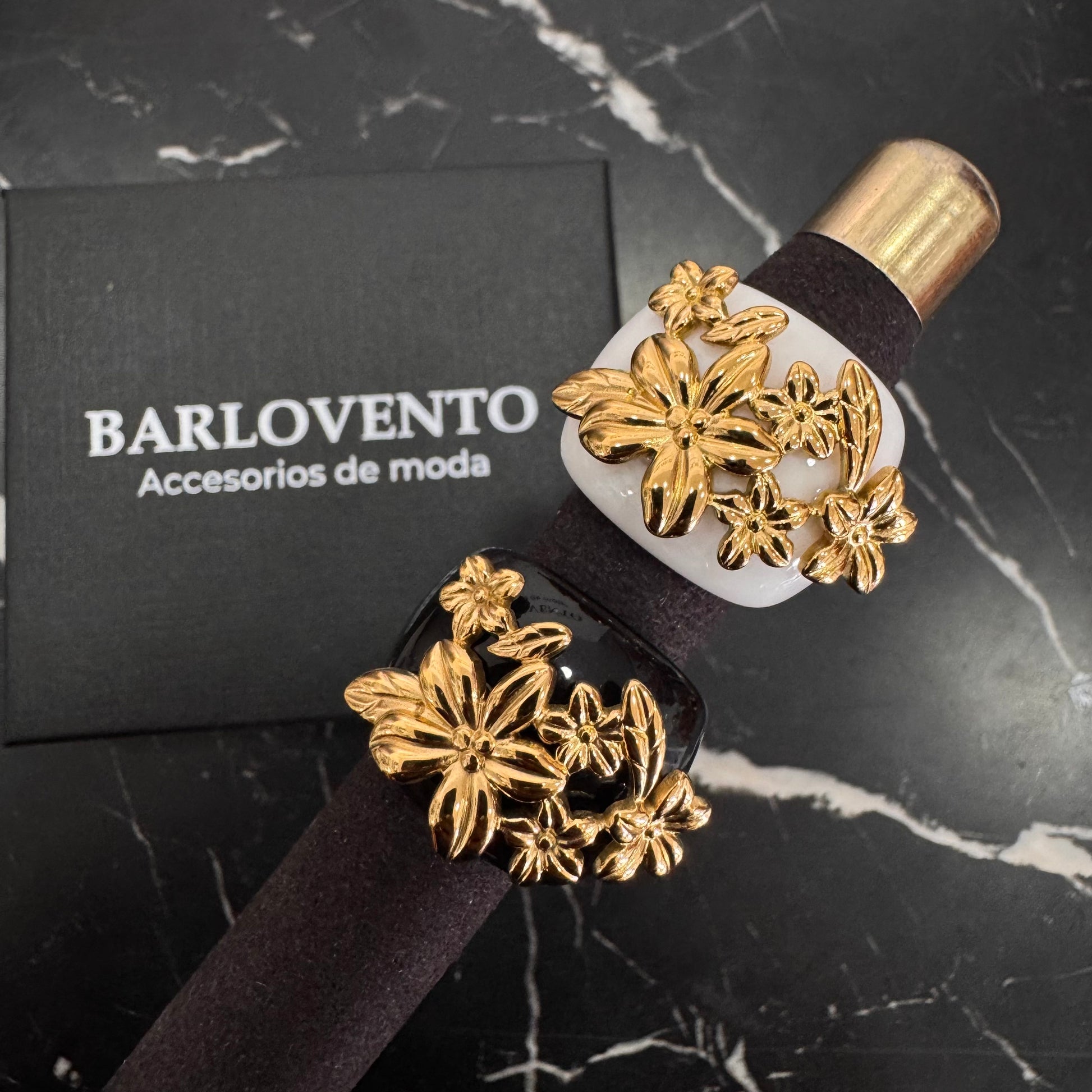 Anillo de resina en talla 8 con detalles dorados en acero inoxidable
