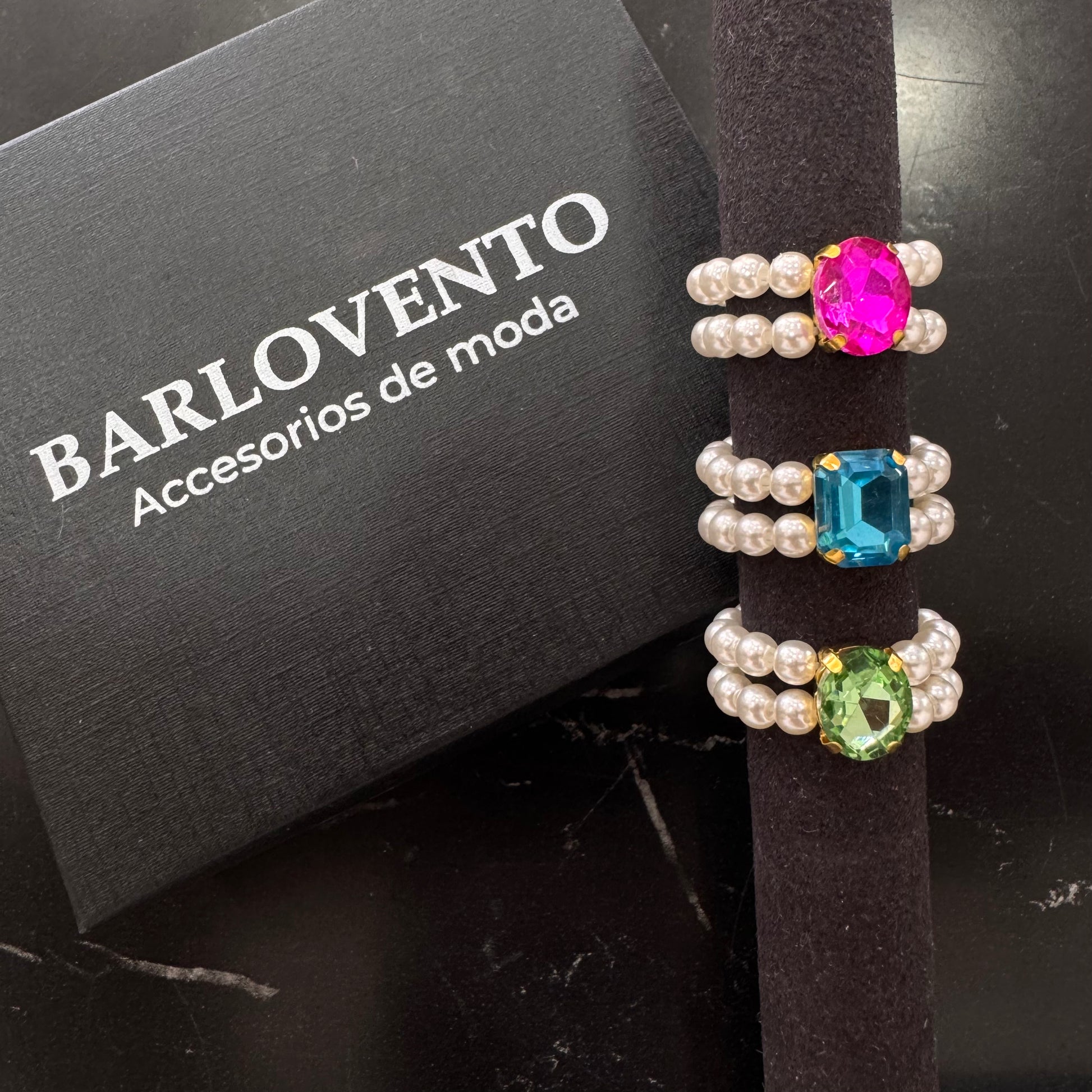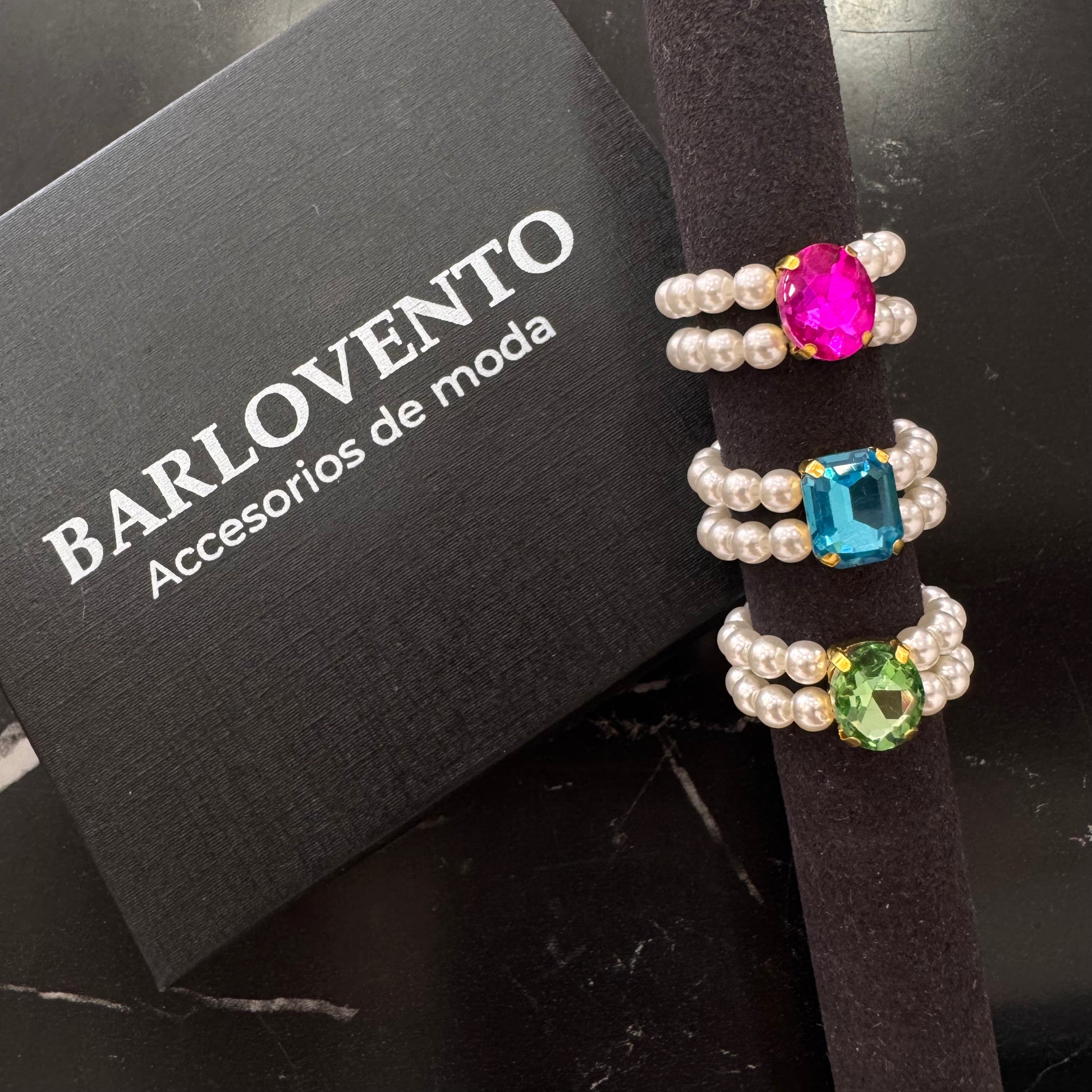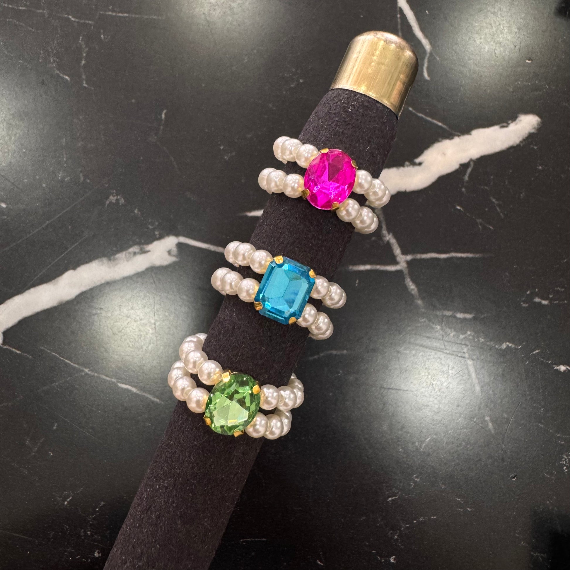 Anillo elástico y ajustable de perlas con detalle en cristal
