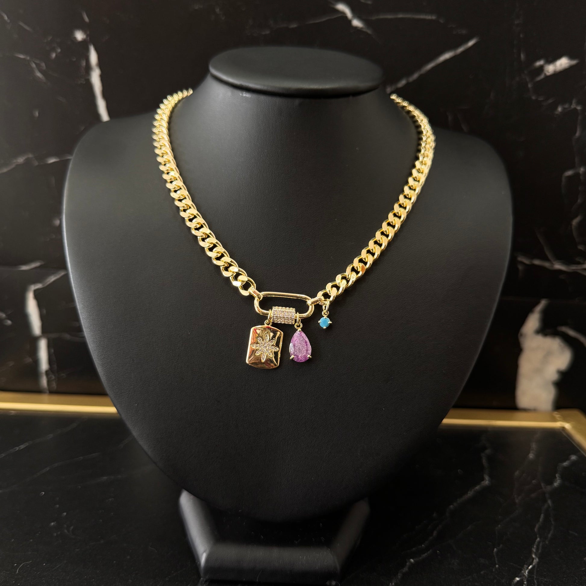 COLLAR DE ORO LAMINADO CON DIJES CON ZIRCONIAS