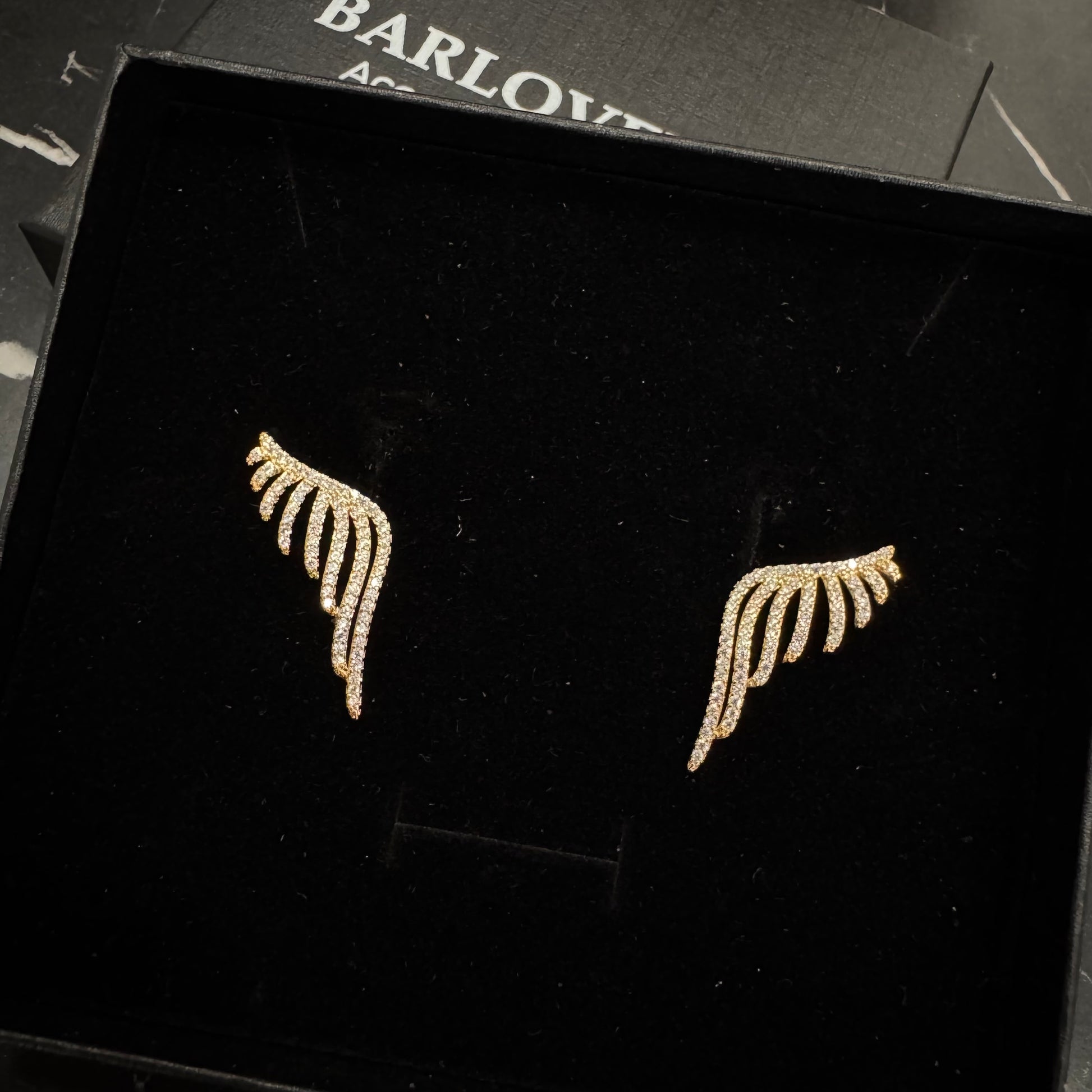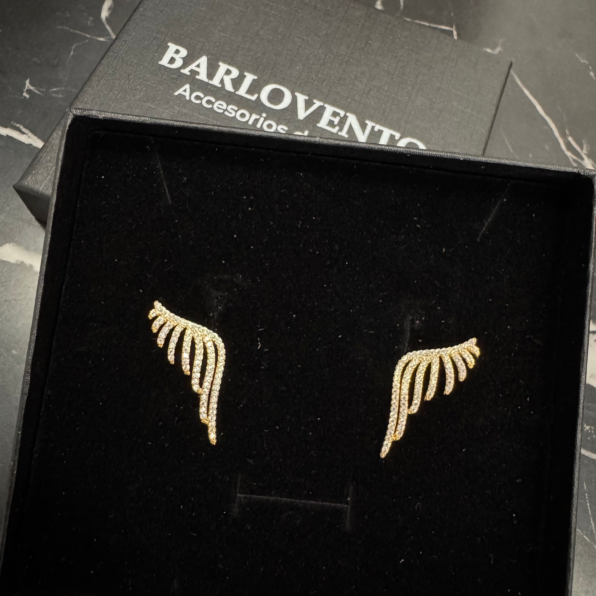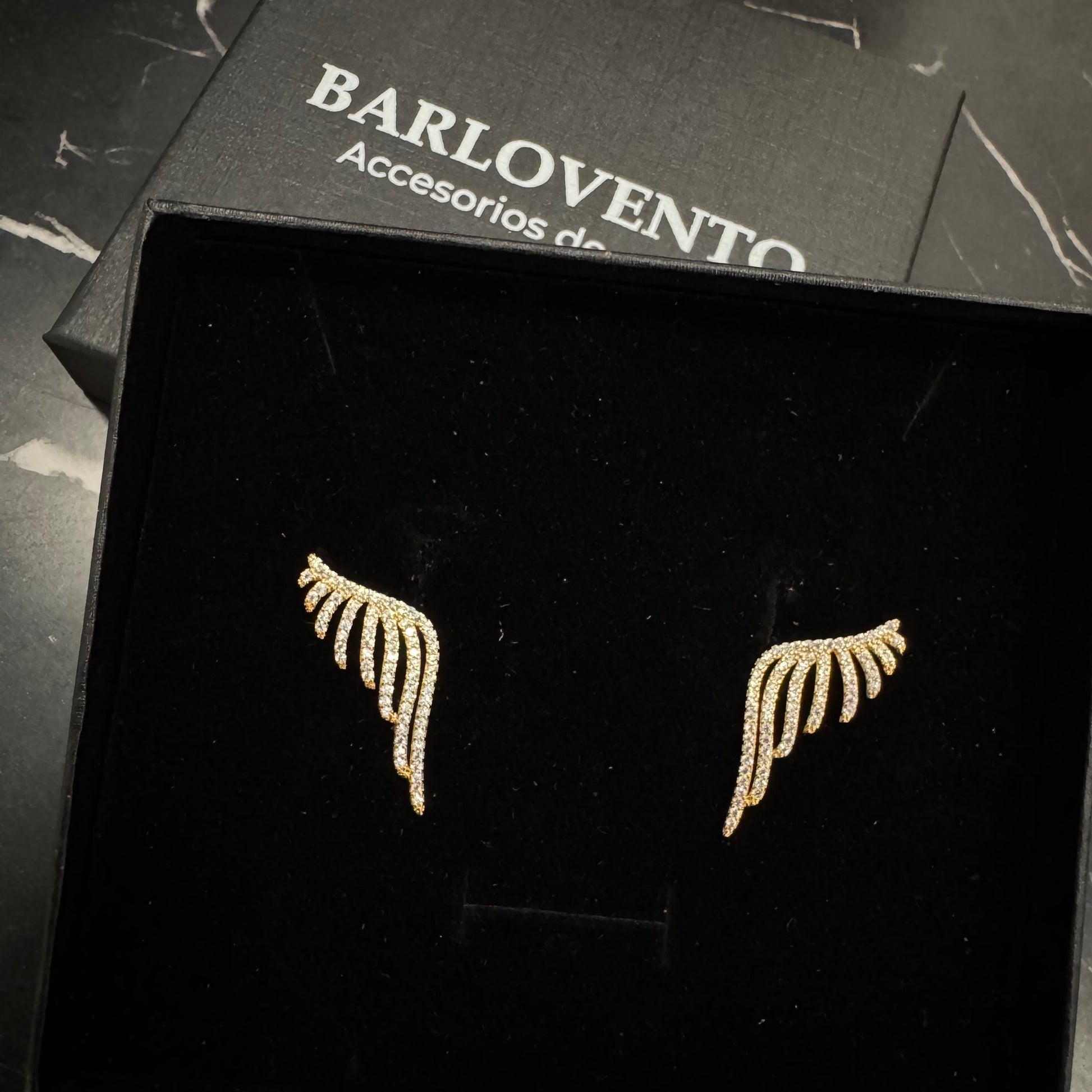 Aretes en forma de ala con poste de plata y zirconias
