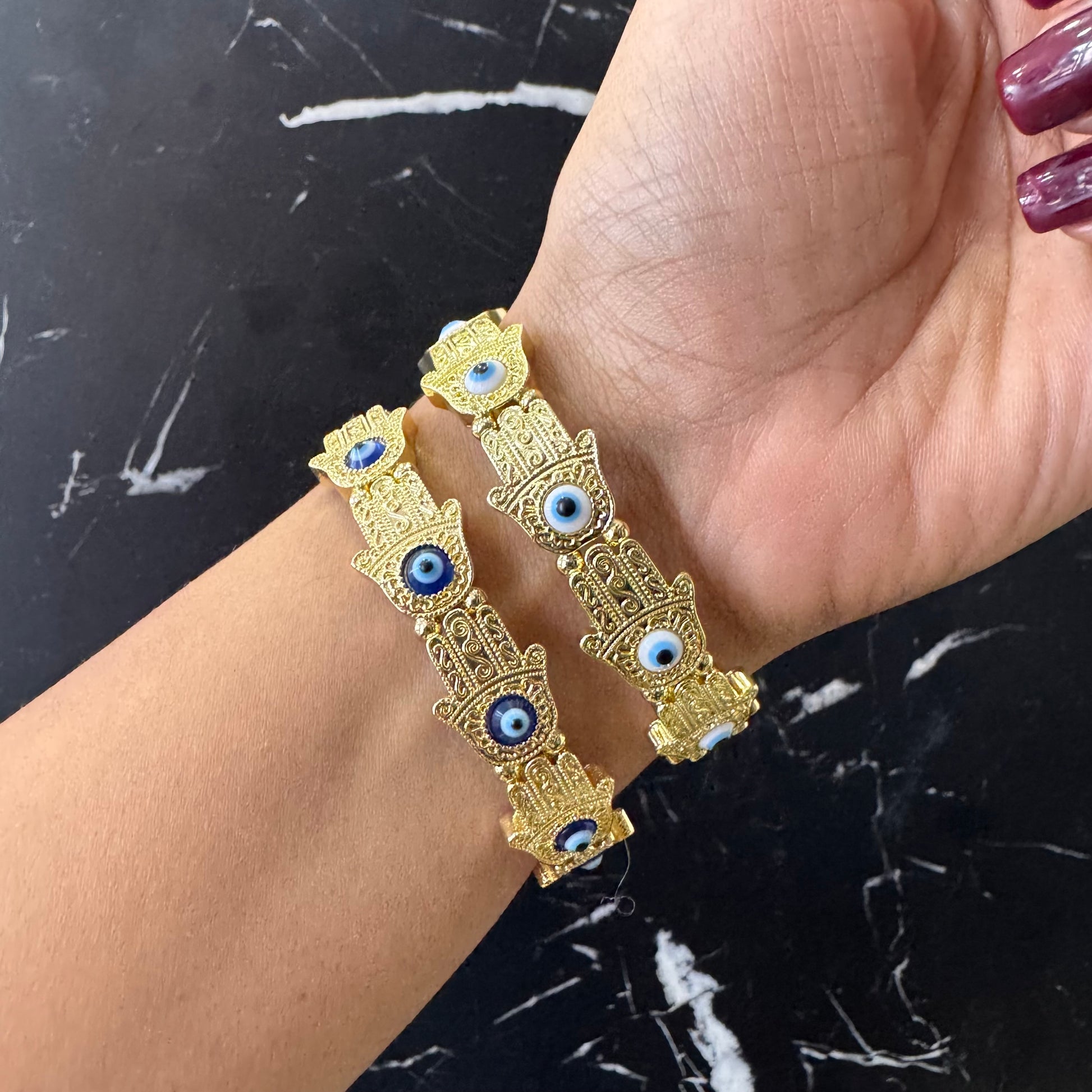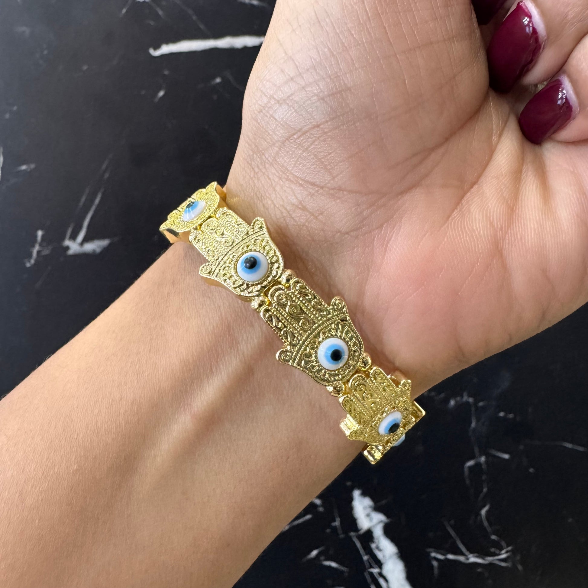Pulsera elástica con diseño de mano de Fátima con ojo