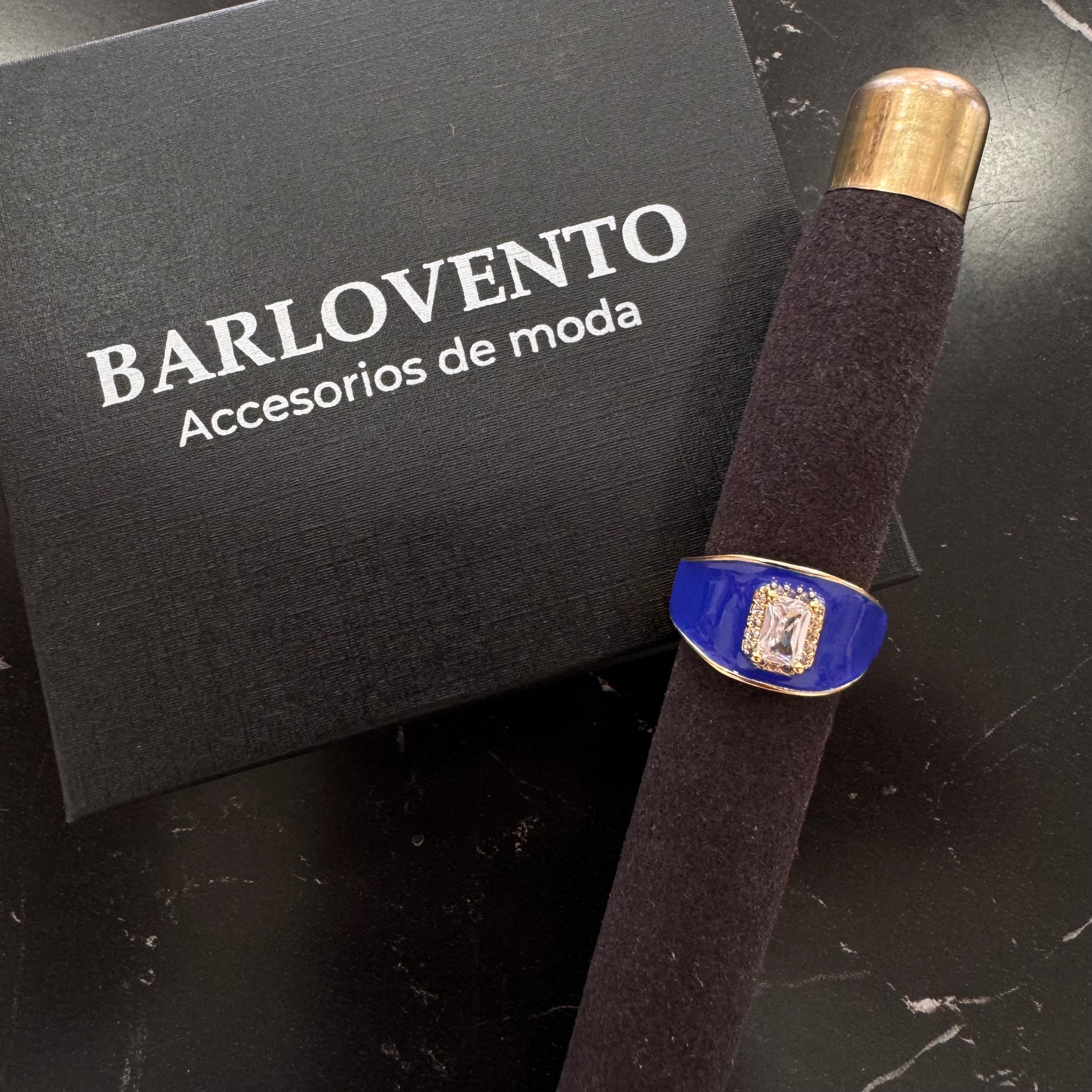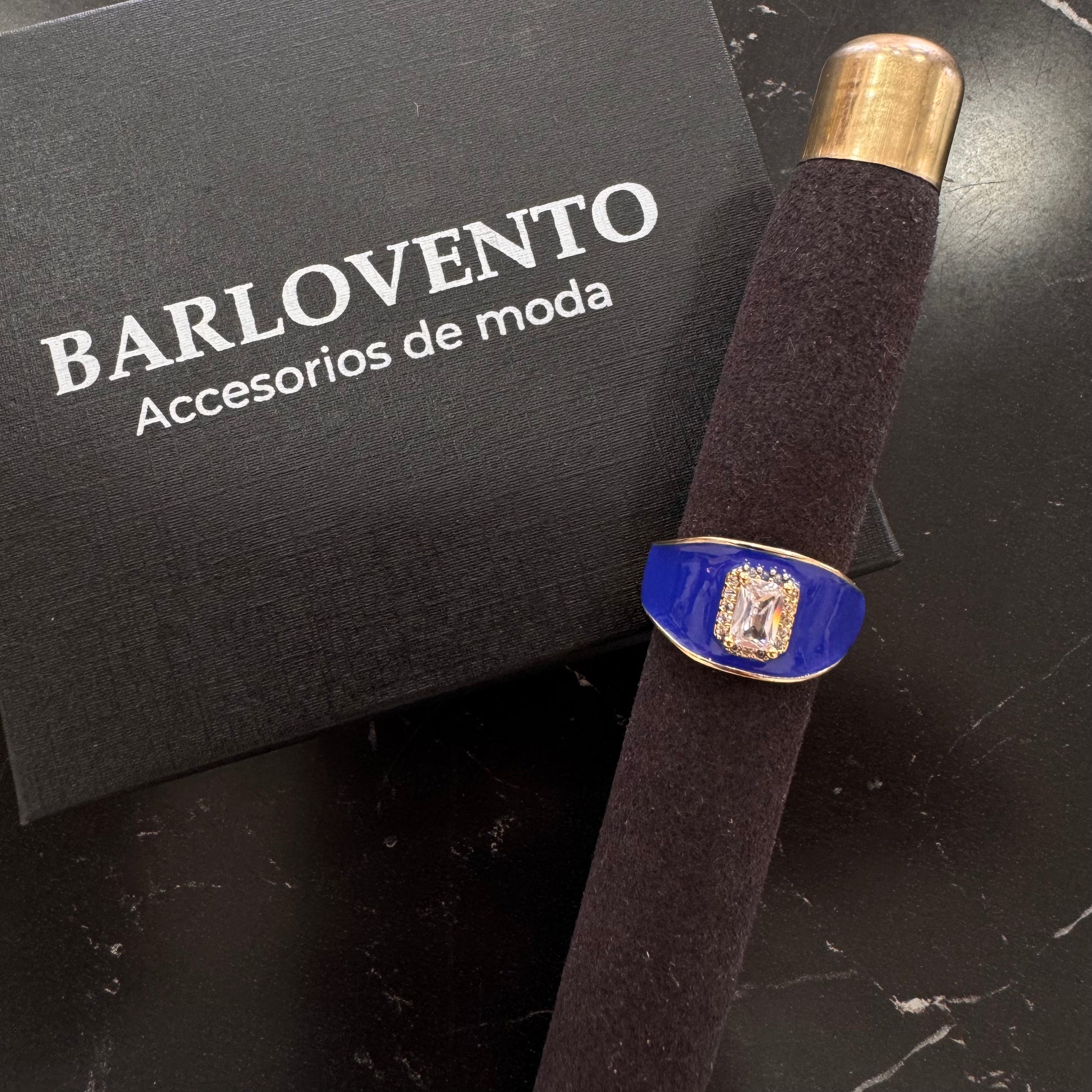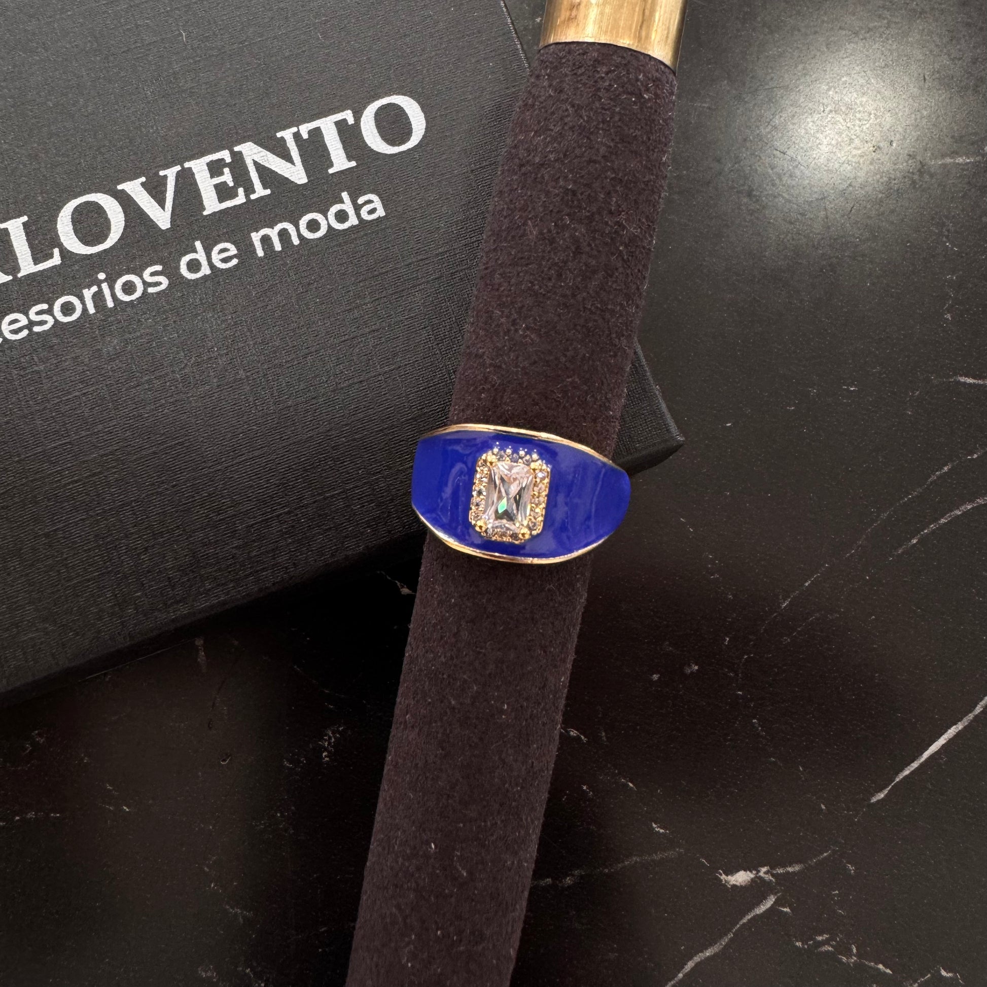 Anillo en oro laminado con diseño esmaltado y detalles en zirconias